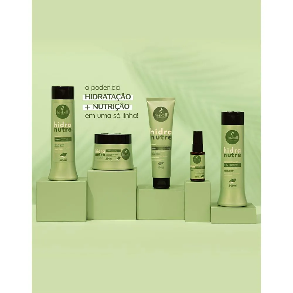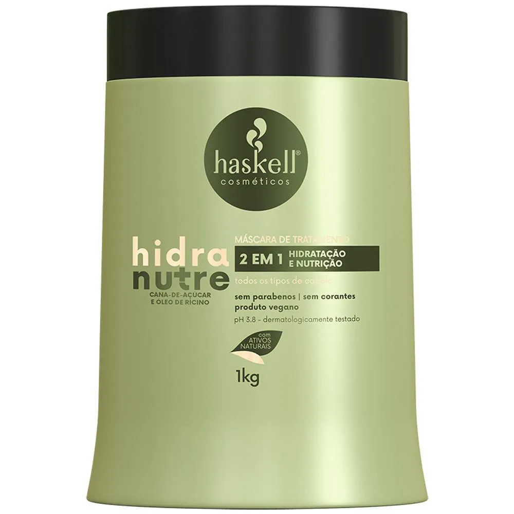 A Haskell Hidranutre Máscara 1Kg é um produto capilar de tratamento intensivo, desenvolvido como parte de uma linha de cuidados capilares 2 em 1 (hidratação e nutrição). É uma máscara low poo, vegana, sem parabenos, sem corantes e sem glúten, formulada com ativos de cana-de-açúcar e óleo de rícino.