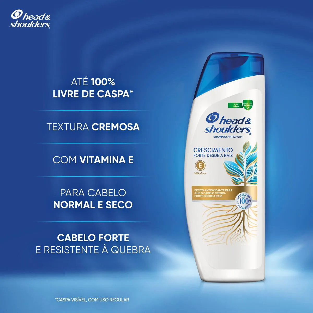 O Shampoo Head & Shoulders Crescimento Forte Desde a Raiz possui ação antioxidante e efeito revitalizante desde a raiz do cabelo, com vitamina e e efeito antioxidante para o seu cabelo crescer forte como você. Fórmula DermaSense com pH equilibrado.