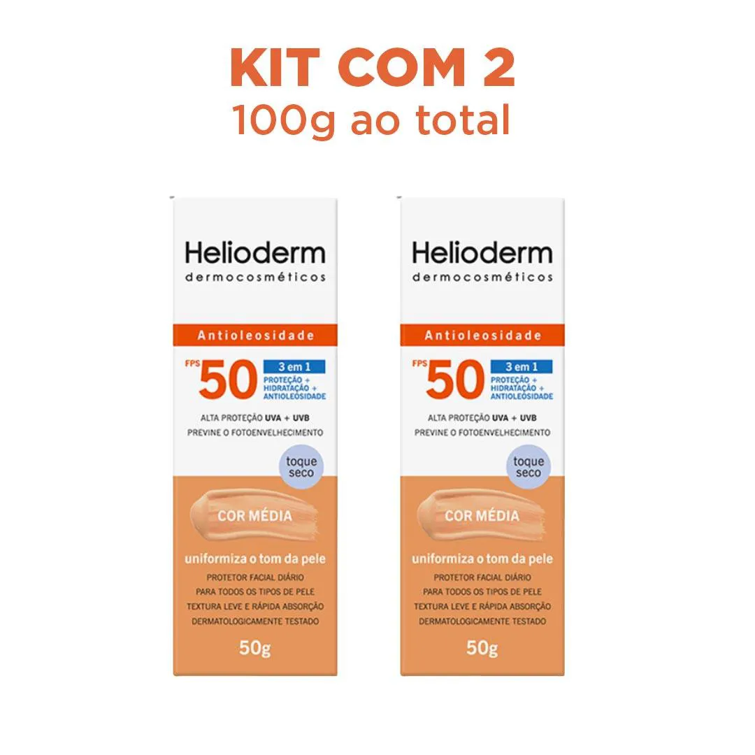 Helioderm Facial Fps50 Cor Média Kit 2 - 50G - Kley Hertz
