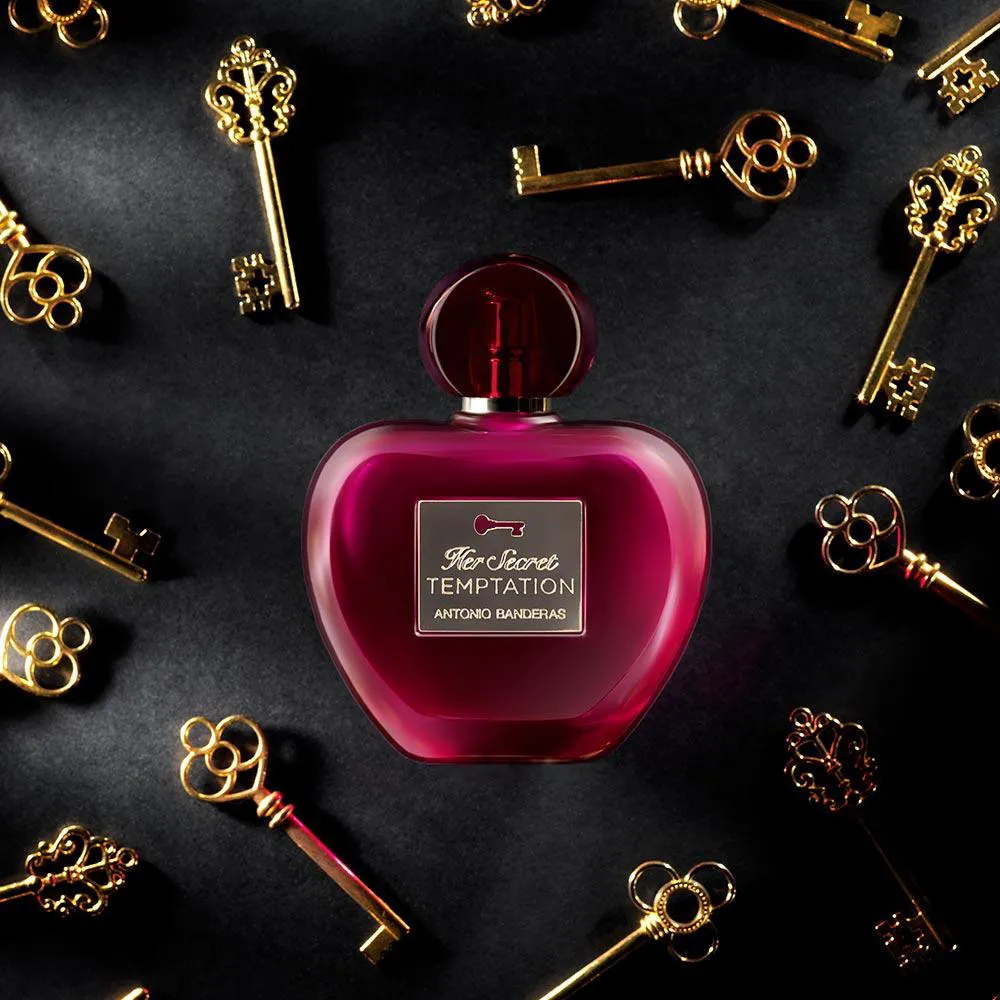 O perfume feminino Her Secret Temptation de Antonio Banderas é um novo capítulo de sedução misteriosa e irresistível de Antonio Banderas ...Impossível resistir a tentação.