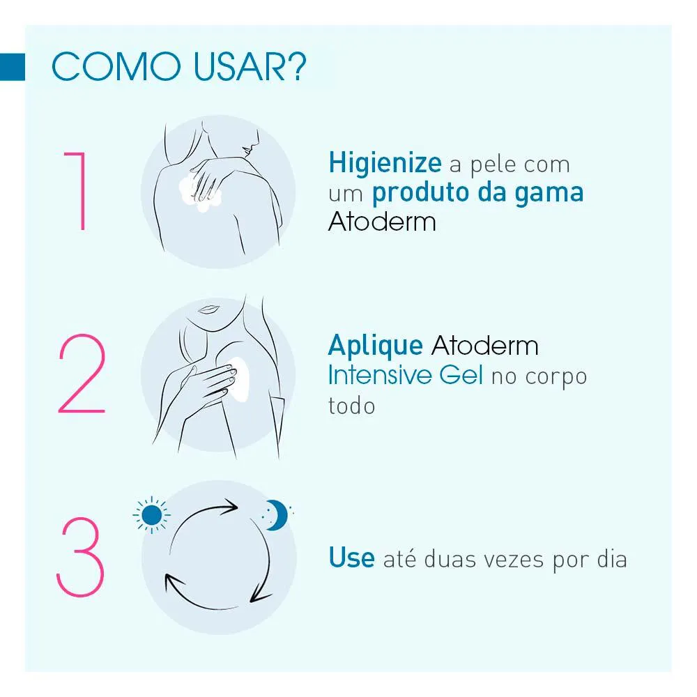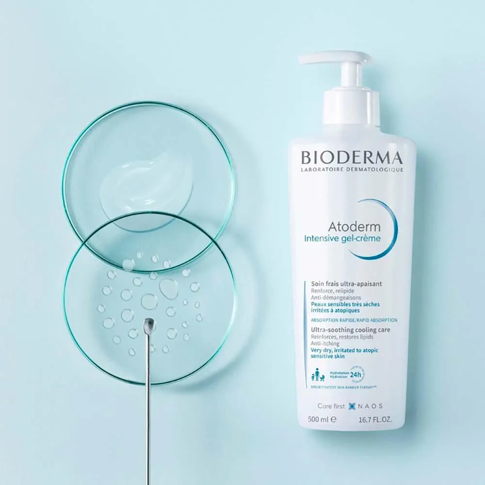 Atoderm Intensive Gel Creme é a 1ª hidratação intensa anti-coceira com textura gel ultra fresca para peles secas e muito secas, irritadas³ com coceira². Sua textura inovadora, leve e fresca de rápida absorção, facilita a aplicação diária do hidrante e aumenta a adesão ao tratamento.