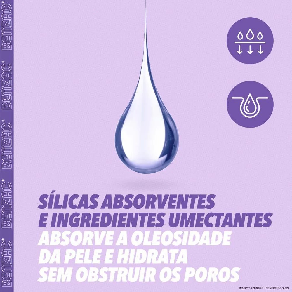 - Sílicas absorventes e ingredientes umectantes, que absorvem a oleosidade da pele e hidratam sem obstruir os poros;