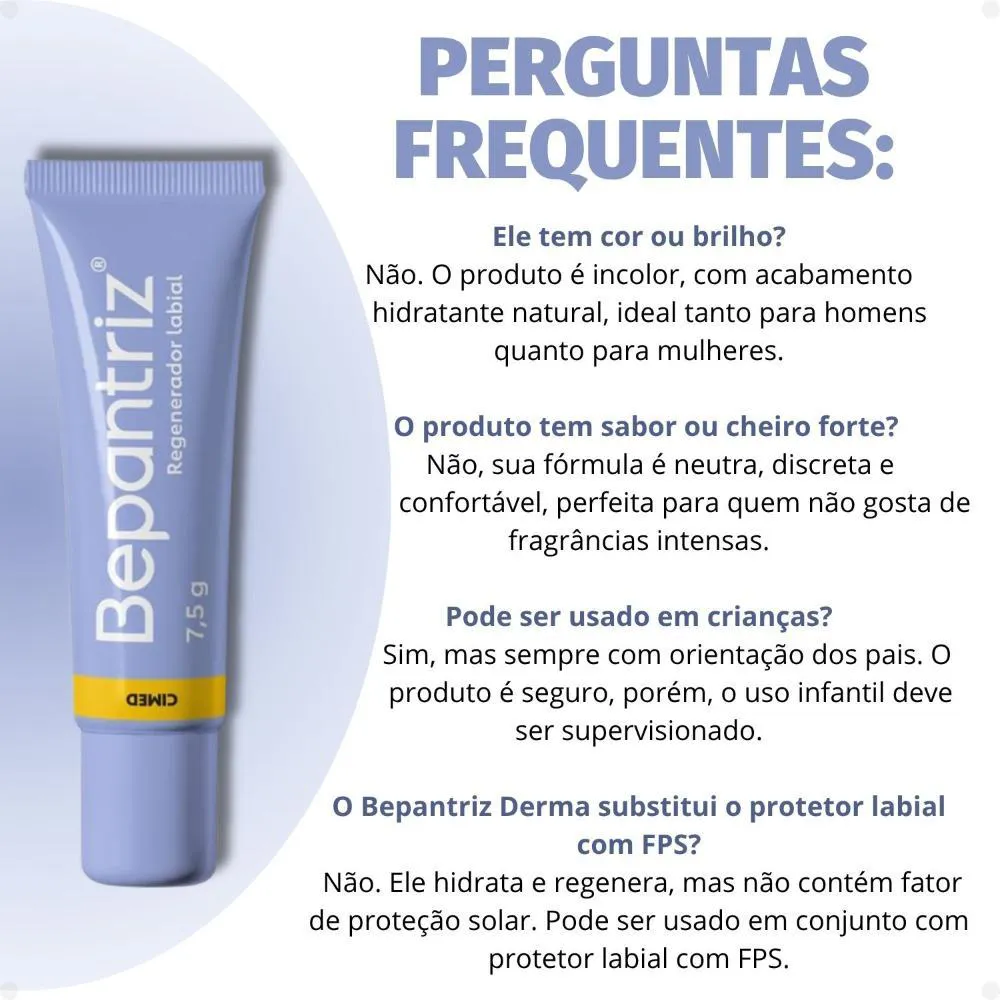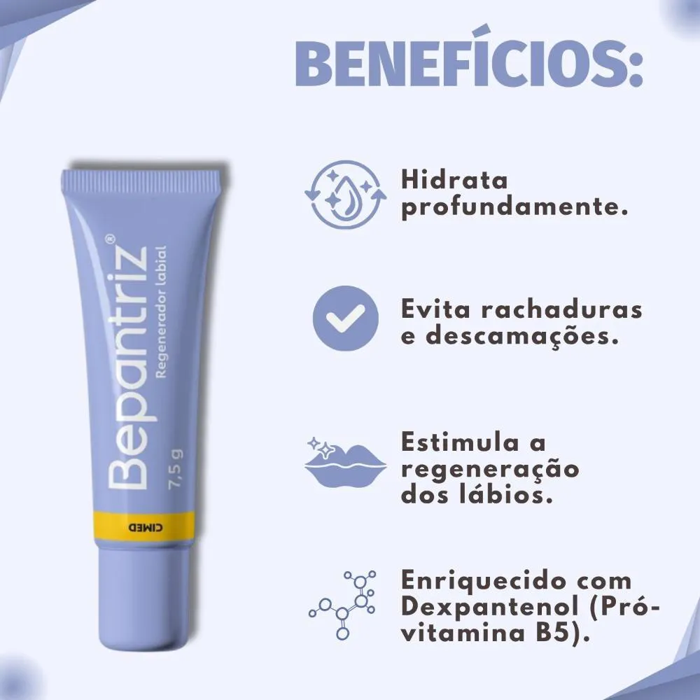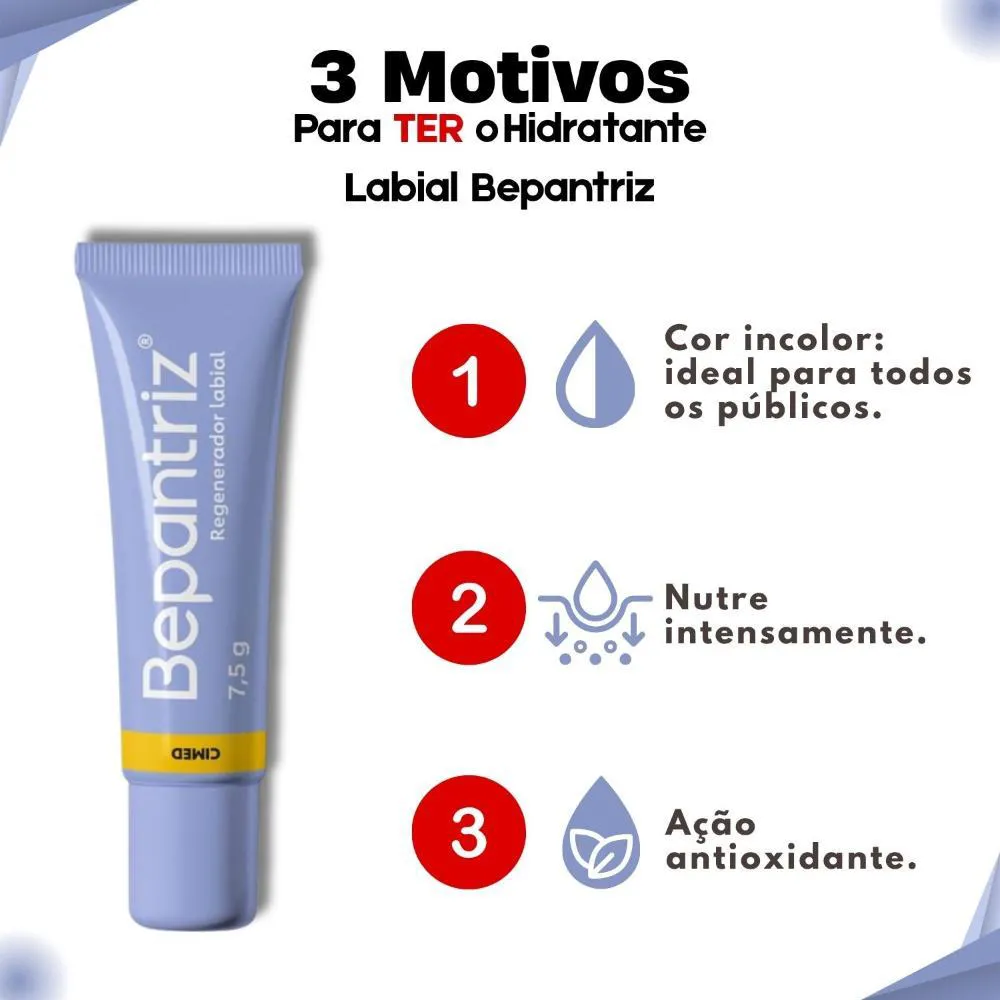 O Hidratante Labial Bepantriz Cimed Regenerador Labial 7,5g é a solução ideal para quem busca lábios profundamente hidratados, nutridos e protegidos. Desenvolvido pela renomada marca CIMED, este produto atua na regeneração natural da pele labial, prevenindo o ressecamento e proporcionando uma sensação de conforto duradouro. Com sua fórmula avançada, ele se torna um aliado indispensável na rotina de cuidados diários, garantindo lábios macios e saudáveis.Benefícios Principais