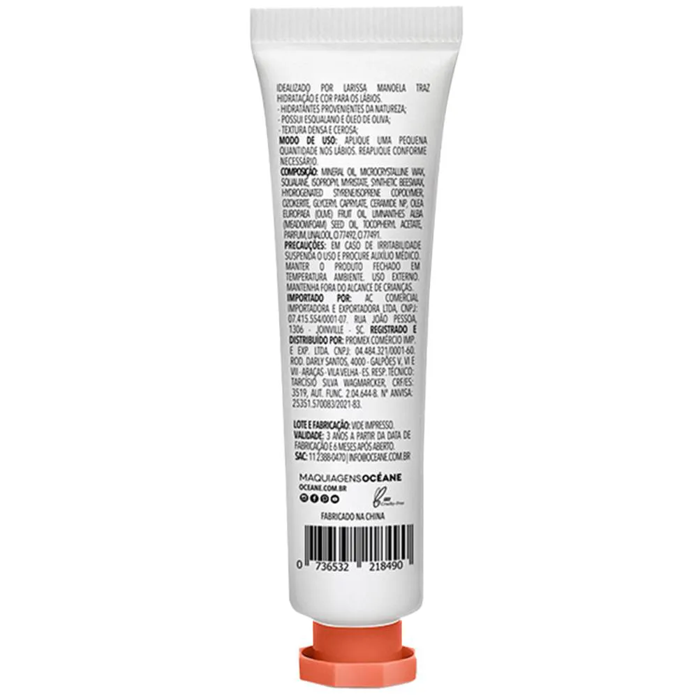 O Hidratante Labial Larissa Manoela by Océane é um produto de textura densa e cerosa, desenvolvido para hidratação, com fórmula que contém ativos como óleo de oliva e óleo de esqualano. Apresenta-se em bisnaga prática e possui acabamento luminoso.