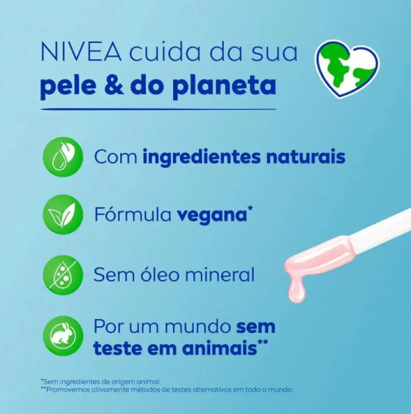 Com um brilho natural que combina com todos os tons de pele, sua fórmula vegana conta com ingredientes naturais e sem testes em animais. O Nivea Lip Oil pode ser combinado com um esfoliante para destacar ainda mais seus lábios de forma natural ou com uma base de cor forte.