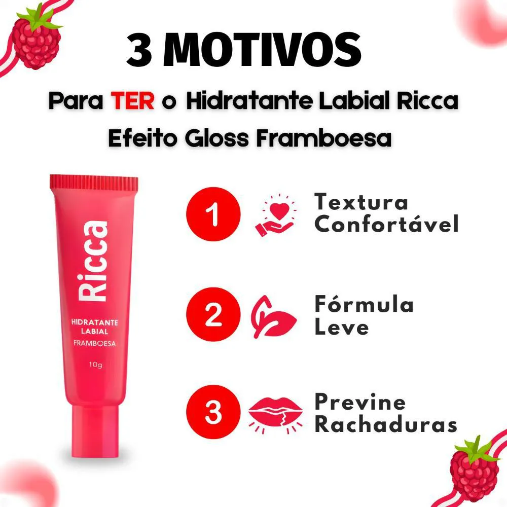 Hidratante Labial Ricca Efeito Gloss Framboesa 10g