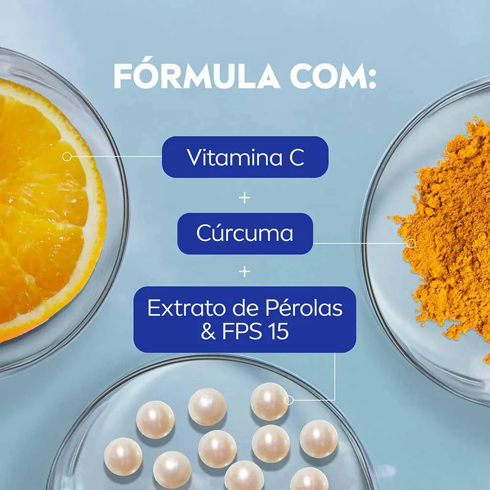 Sua fórmula exclusiva reduz a aparência de marcas escurecidas, proporcionando uma pele uniforme e radiante. Além disso, conta com FPS 15, que protege contra os raios UVA e UVB, prevenindo danos causados pelo sol.
