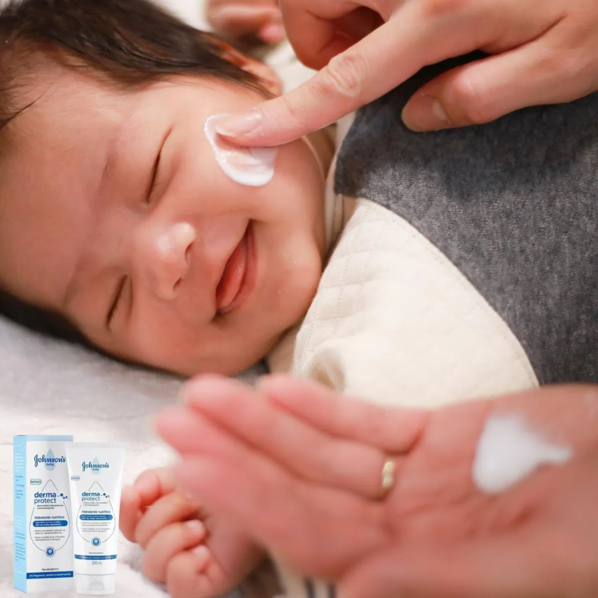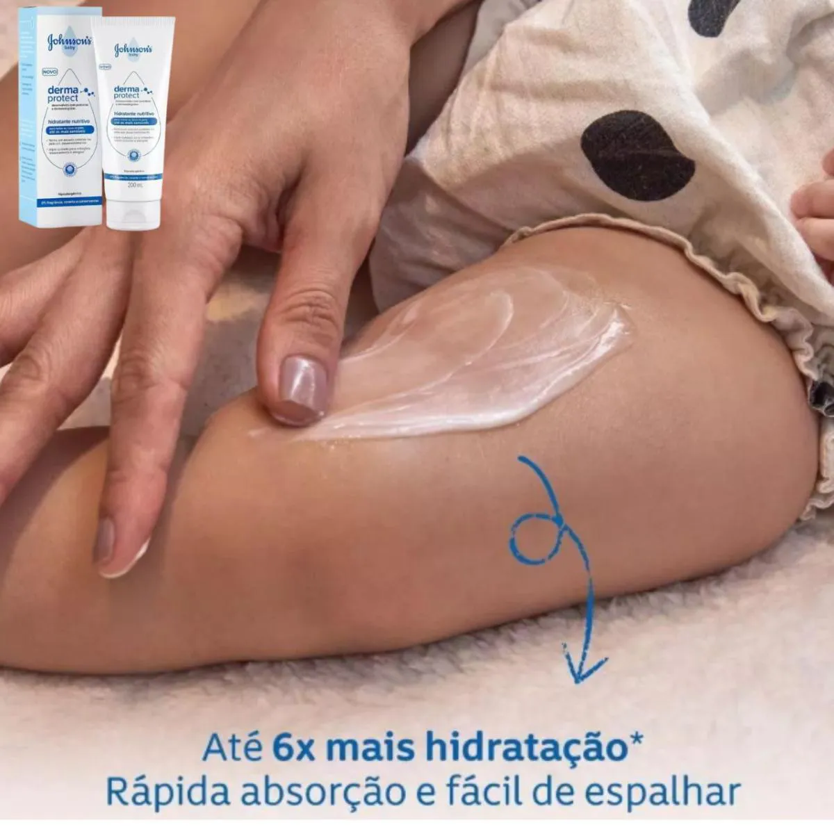 A hidratação diária desde os primeiros dias de vida é essencial para fortalecer a barreira natural da pele do bebê, ainda em desenvolvimento e mais sensível. O JOHNSON’S® Derma Protect foi desenvolvido especialmente para proteger, nutrir e acalmar a pele delicada dos pequenos.