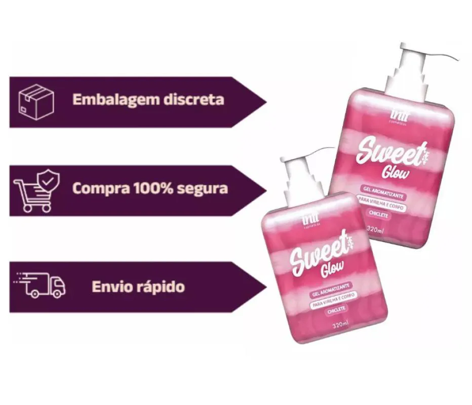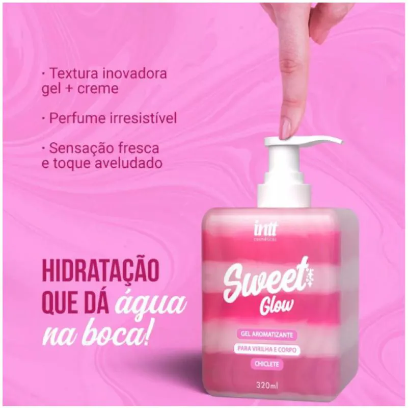 O Sweet Glow é um hidratante inovador em gel e creme, com textura aveludada e aroma de chiclete, desenvolvido para hidratar e perfumar o corpo. Serve para proporcionar maciez, nutrição e suavidade em todas as regiões do corpo, incluindo virilha e bumbum, garantindo uma hidratação rápida e sem deixar a pele pegajosa.