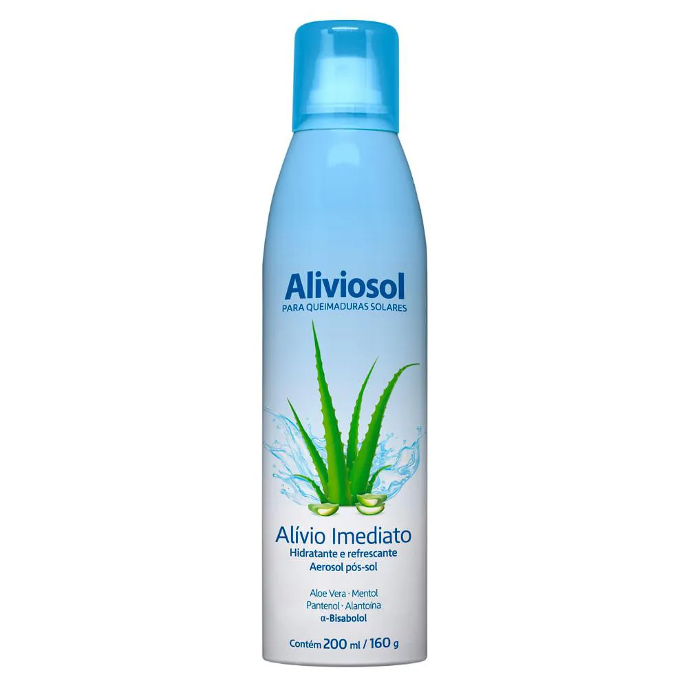 Aliviosol Aerosol é indicado para aliviar rapidamente a pele sensibilizada e avermelhada pelo excesso de sol. Sua fórmula concentrada em Aloe Vera, a-Bisabolol, Alantoína e Pantenol (vitamina B5) confere excelentes propriedades calmantes, de regeneração celular e hidratação. Além disso, contém Mentol, ingrediente responsável pela agradável sensação refrescante.