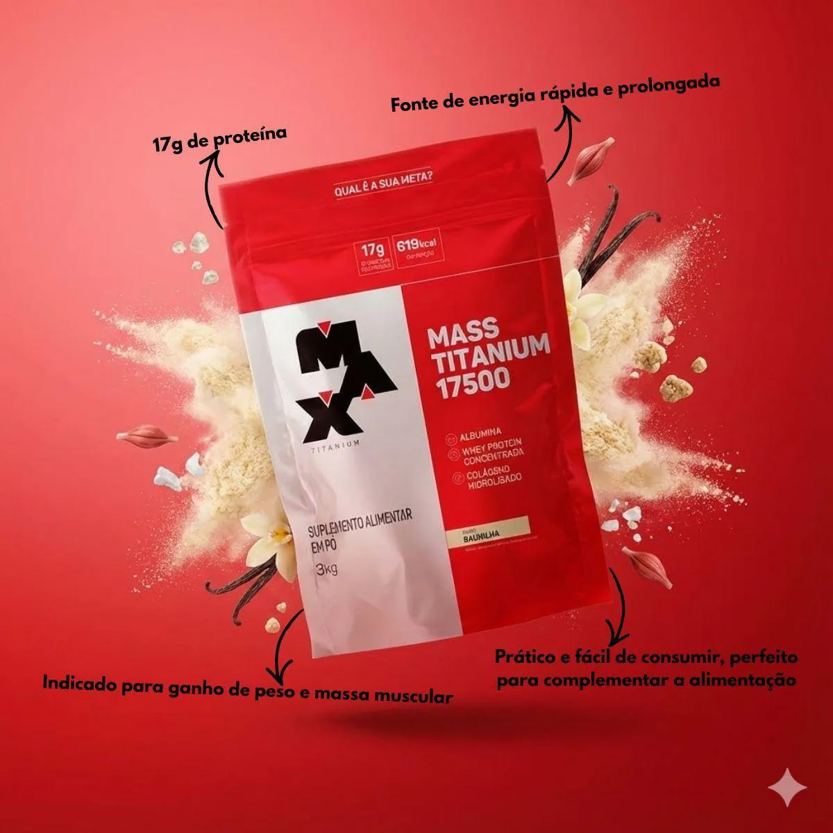 HIPERCALÓRICO MASS BAUNILHA REFIL 17G DE PROTEÍNA 3KG MAX TITANIUM