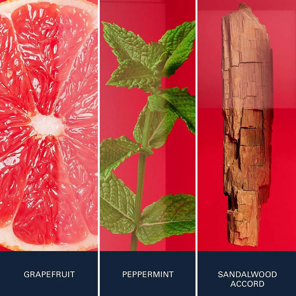 - Mistura energética de cítricos, hortelã e madeiras.
