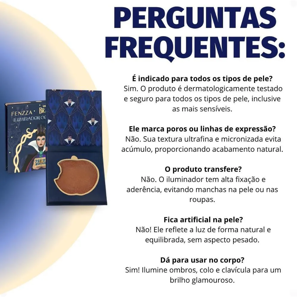 - Parte da exclusiva coleção Branca De Neve Disney Rainha Má da Fenzza, ideal para colecionadores e fãs da Disney que buscam produtos únicos e temáticos. - Produto dermatologicamente testado, garantindo segurança e cuidado para todos os tipos de pele, minimizando o risco de alergias e irritações. - Formulação Livre de parabenos e Cruelty free, alinhada com as tendências de beleza consciente, que respeita os animais e o meio ambiente. - Possui alta pigmentação, garantindo um brilho intenso com apenas uma aplicação. - Sua textura ultrafina adere facilmente à pele, proporcionando um acabamento impecável e natural.Ocasiões de Uso/Cenários Ideais