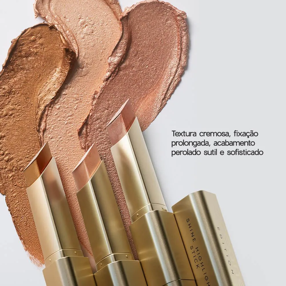 Para Conquistar Uma Pele Naturalmente Iluminada, Conte com o Shine Highlight Stick, da Linha Edition. com Acabamento Perolado Suave e Sofisticado, Ele Proporciona Um Efeito Glow Radiante, Valorizando a beleza Natural da Pele com Um Toque de Luminosidade e Elegância.
