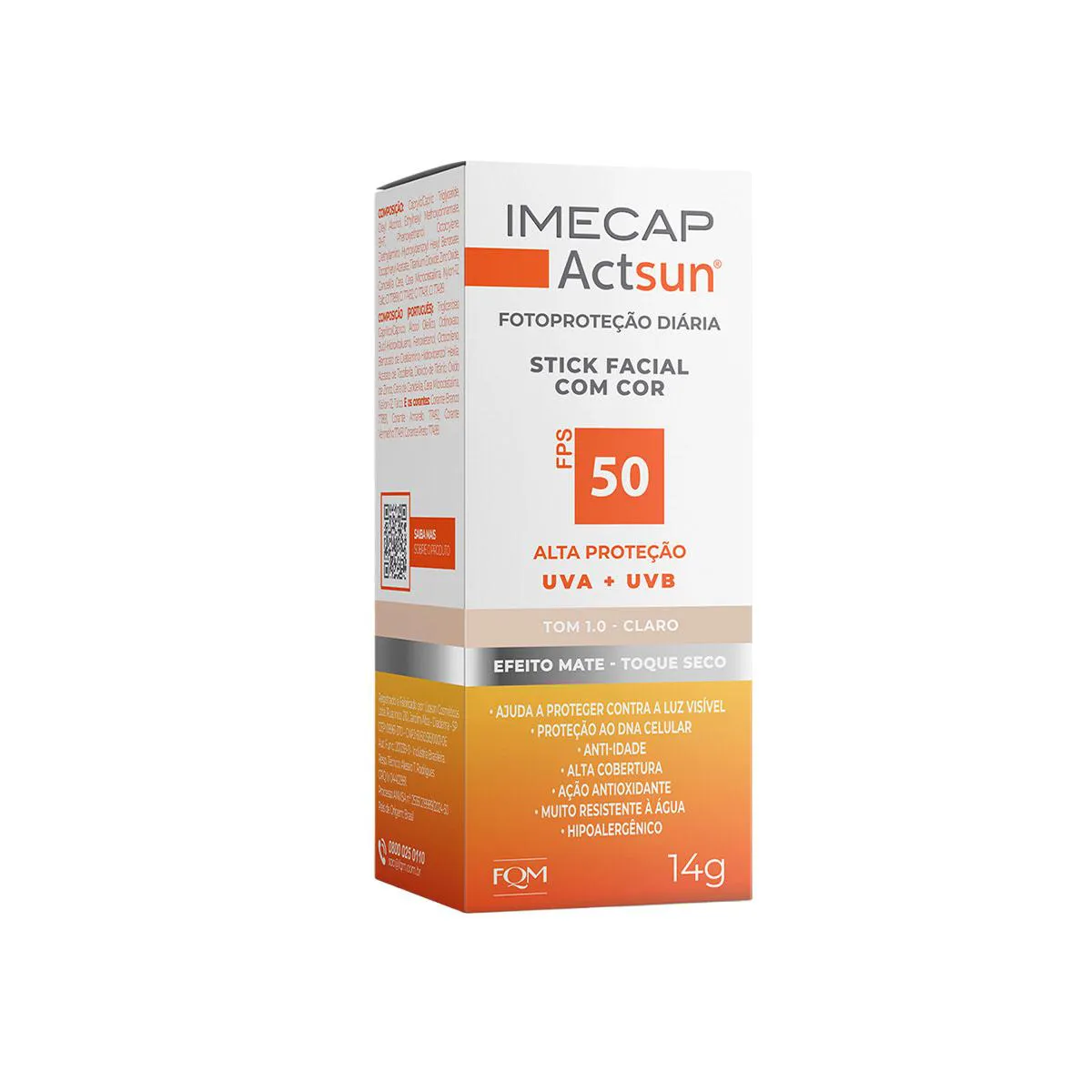 Protetor Solar Facial Stick Imecap Actsun FPS 50 Claro 14g
