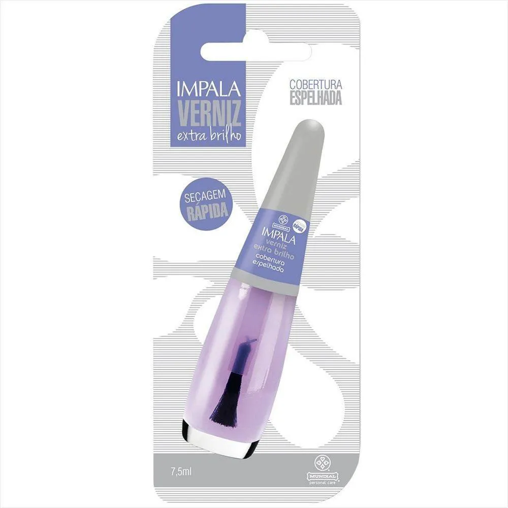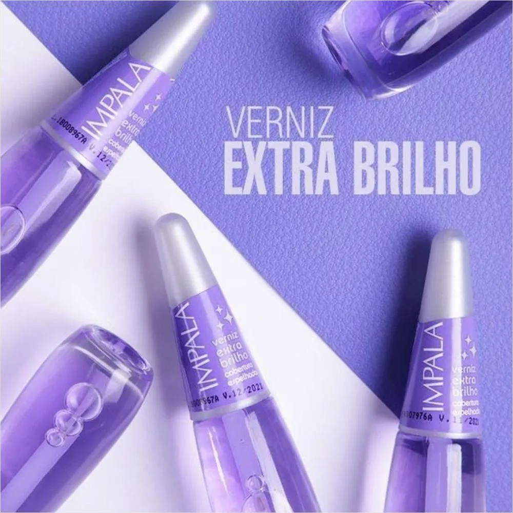 Impala Verniz Extra Brilho Cobertura Espelhada 7,5ml ? Brilho e Proteção Inigualáveis para Suas Unhas!Descubra o poder do Impala Verniz Extra Brilho Cobertura Espelhada! Com uma inovadora que proporciona um acabamento impecável e um brilho intenso, esse esmalte é a escolha perfeita para quem busca unhas deslumbrantes e bem cuidadas. Sua embalagem de 7,5ml é prática e ideal para levar na bolsa, garantindo que você esteja sempre pronta para uma emergência de beleza!Ingredientes e Composição:O Impala Verniz Extra Brilho é enriquecido com componentes de alta qualidade que garantem uma aplicação suave e duradoura. Sua contém resinas especiais que promovem a aderência, proporcionando um efeito espelhado que intensifica a cor e revitaliza o visual das suas unhas. Além disso, é livre de substâncias nocivas, oferecendo e cuidado para suas unhas.Modo de Usar:Para obter um acabamento perfeito, comece aplicando uma base protetora nas unhas. Em seguida, aplique uma camada generosa do Impala Verniz Extra Brilho. Espere secar e finalize com mais uma camada para um efeito espelhado ainda mais impactante. O resultado? Unhas com um brilho que dura por dias!Benefícios:Brilho Extra: Atinge um efeito espelhado inigualável, que captura e reflete a luz de forma sensacional.Durabilidade: de longa duração que resiste ao dia a dia, evitando lascas e descamações.Fácil Aplicação: Pincel desenhado para facilitar a aplicação e garantir uma cobertura uniforme.