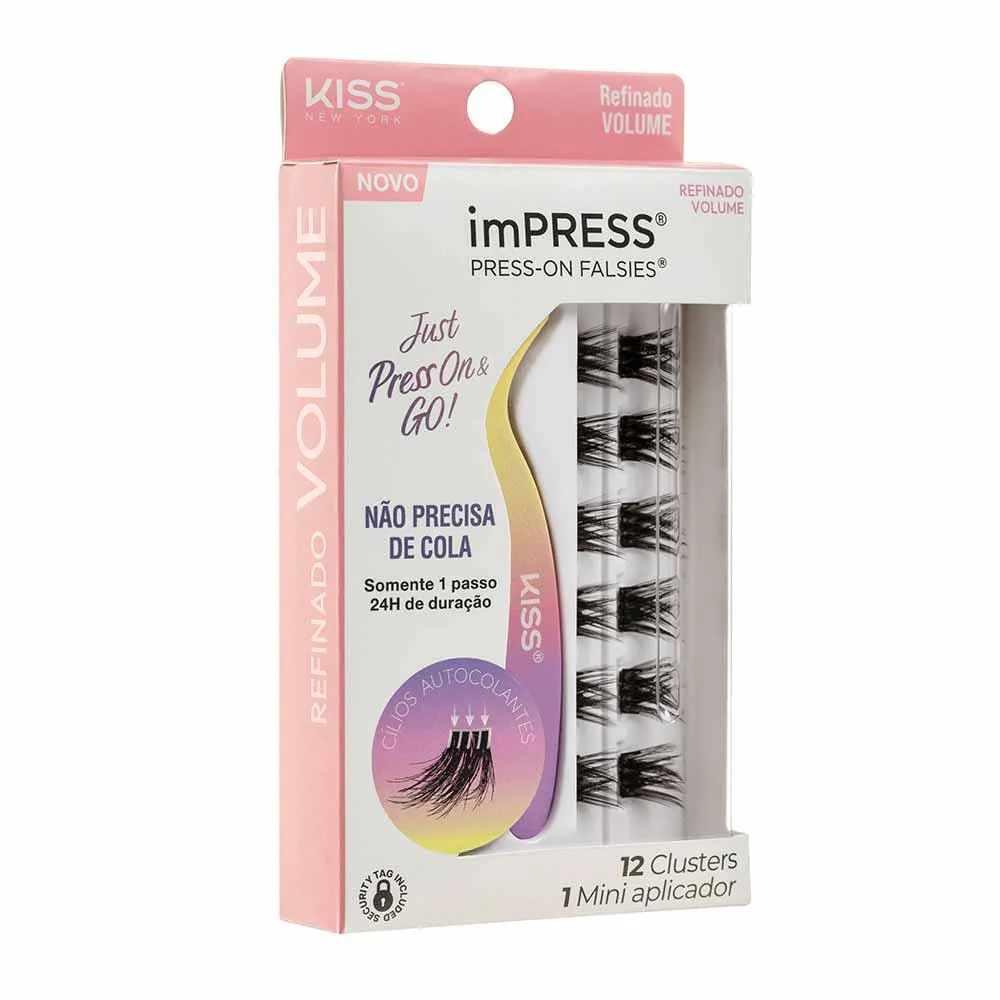 Impress Press-On Falsies Refinado Volume Kit - 12 Cílios Postiços + 1 Mini Aplicador Kit