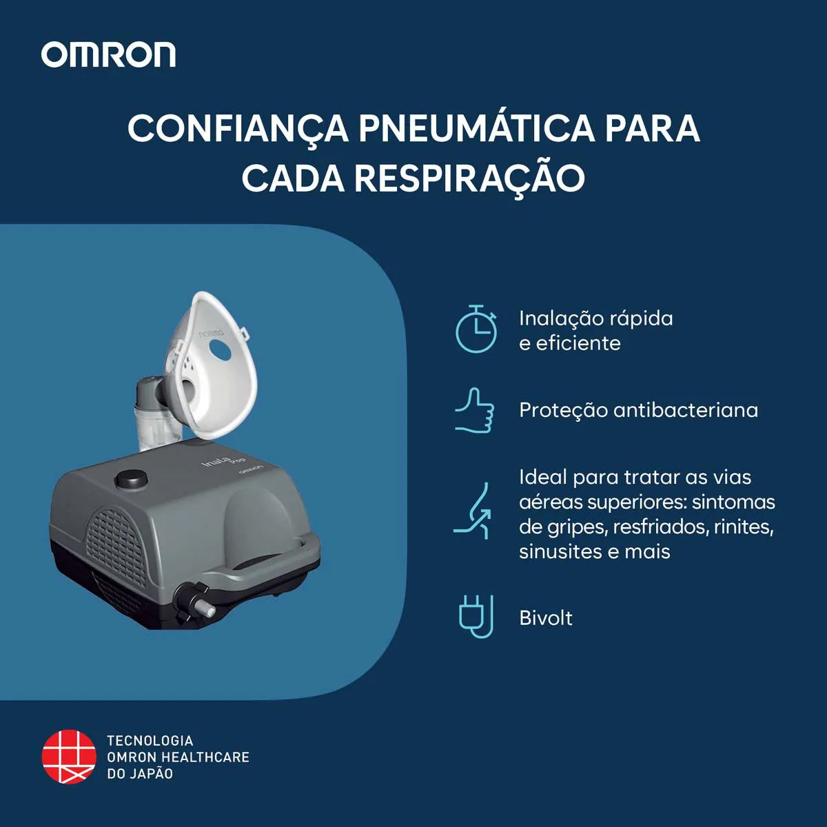 Resultado de pesquisas e constante desenvolvimento técnico, o inalador Omron InalaPop é indicado para o tratamento de sinusite, asma, pneumonia, bronquite, entre outros problemas relacionados às vias aéreas superiores.