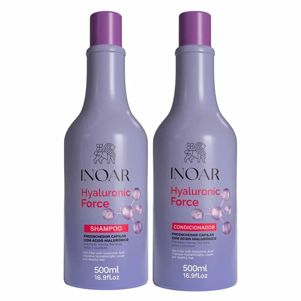 O Inoar Hyaluronic Force Kit é um conjunto de produtos capilares composto por Shampoo e Condicionador, desenvolvido com Ácido Hialurônico para tratamento e cuidado capilar.