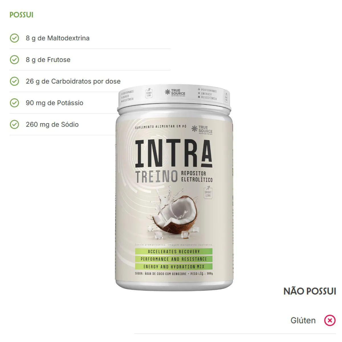O que é e para que serve o Intra Treino Repositor Eletrolitico 810G True Source Agua De Coco E Gengibre?