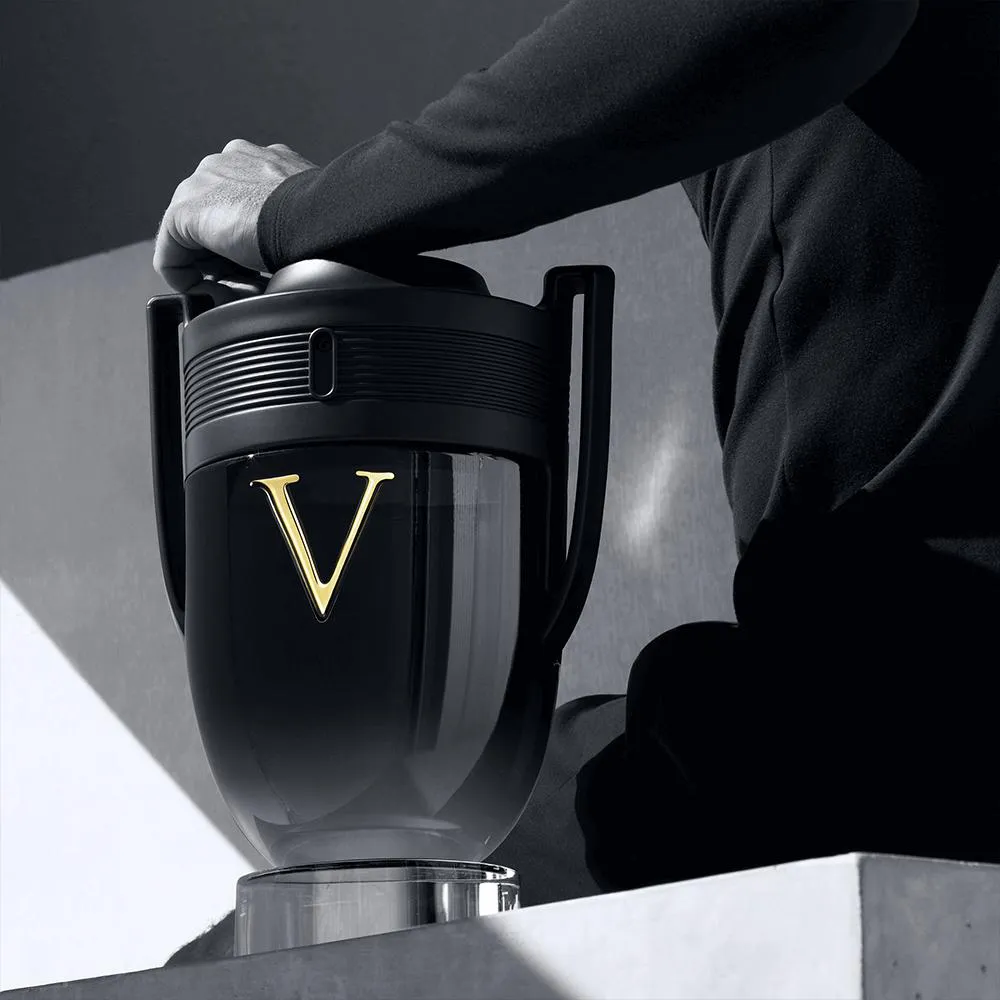 Forte e envolvente, nada pode detê-lo. O icônico frasco de Invictus, um troféu digno do maior dos campeões, ressurge pela primeira vez em um tom preto brilhante e extremamente poderoso. Sua tampa também ostenta uma nova cor: o preto fosco e intenso, criando um contraste acentuado e ainda assim harmônico com a deusa Olympeá Blossom. Uma intensidade inédita, exaltada em seu centro por um imponente V dourado.