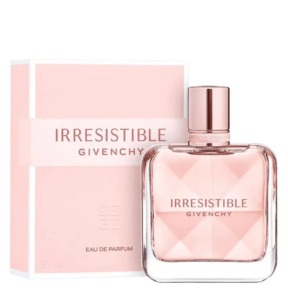O perfume feminino Irresistible, de Givenchy, apresenta um aroma irreverente, energético e sedutor. Seu acorde segue em um dueto colorido, com rosa luxuosa e a madeira clara. Notas frutadas e suculentas, acentuadas por Pera, Ambreta e Íris. A combinação de cedro e âmbar, criam uma leve excitação ao encontrar sutilmente a nota de almíscar.