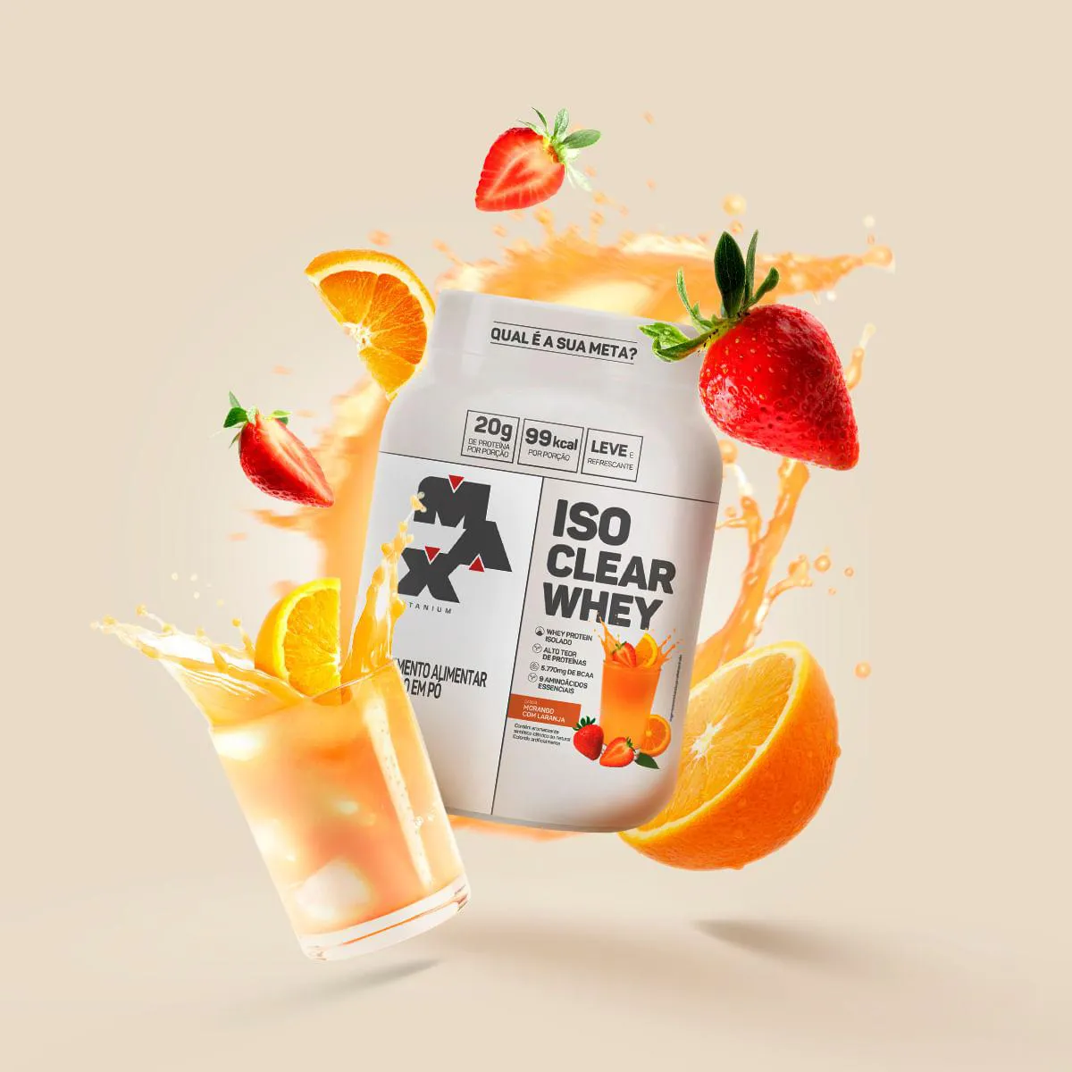 ISO Clear Whey é a evolução da proteína: leve, refrescante e altamente concentrada. Formulado com whey protein Isolado (WPI), entrega 20g de proteína por porção, além de 9 aminoácidos essenciais e mais de 5.700mg de bcaa, contribuindo diretamente para a formação de músculos e ossos. Descrição do Produto Composição: Formulado com Whey Protein Isolado (WPI) de alta concentração Textura e Sabor: É diferente das proteínas tradicionais; dissolve-se facilmente em água e resulta em uma bebida clara, leve e refrescante, com sabores frutados exclusivos (como Abacaxi com Coco e Morango com Laranja). Informações Nutricionais por Porção (27g): 20g de Proteína Isolada. Apenas 99 kcal por dose. Mais de 5.700mg de BCAA (Aminoácidos de Cadeia Ramificada). Contém 9 Aminoácidos Essenciais. Zero Glúten e Zero Açúcar Adicionado. Zero Gorduras Saturadas.