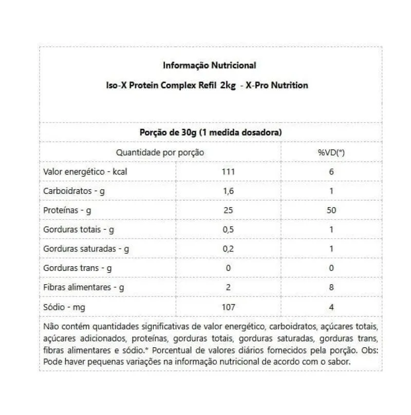 O Iso-X Protein Complex é um suplemento proteico premium composto por proteína isolada do soro do leite, desenvolvido especificamente para atletas e praticantes de atividades físicas. Apresentado em um refil de 2kg com sabor Frapê de Coco, o produto contém 25 gramas de proteínas por dose.