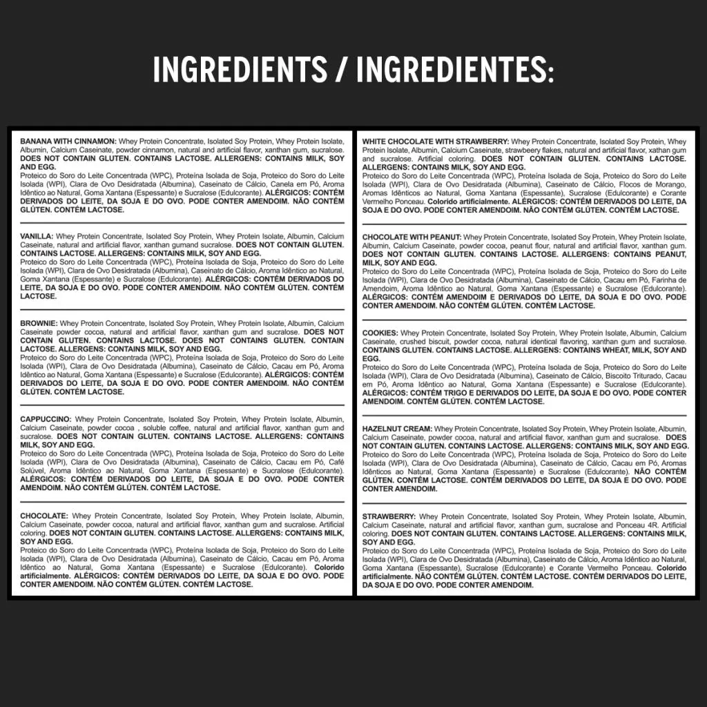 CONTÉM DERIVADOS DO LEITE E DA SOJA*. PODE CONTER AMENDOIM E OVO. *Utilizada na instantaneização da proteína.