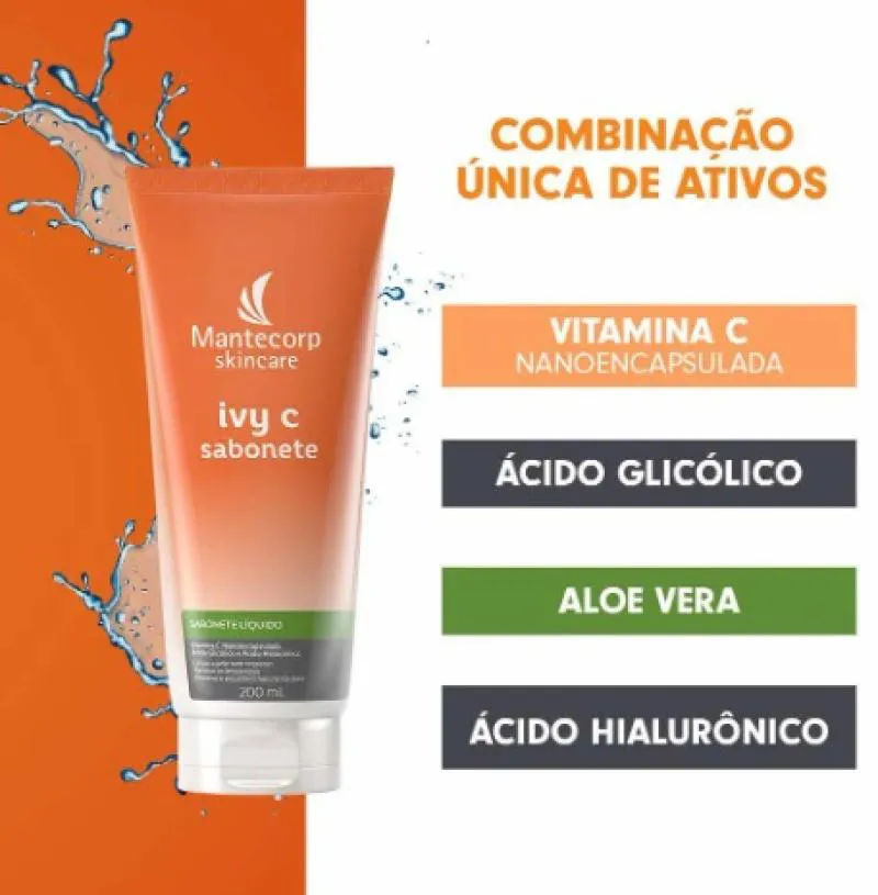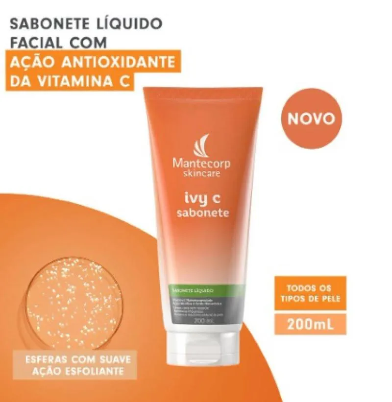 Sabonete Líquido Facial. Mantecorp Ivy C é indicado para a limpeza diária da pele, mantém a pele hidratada e remove as células mortas da superfície.