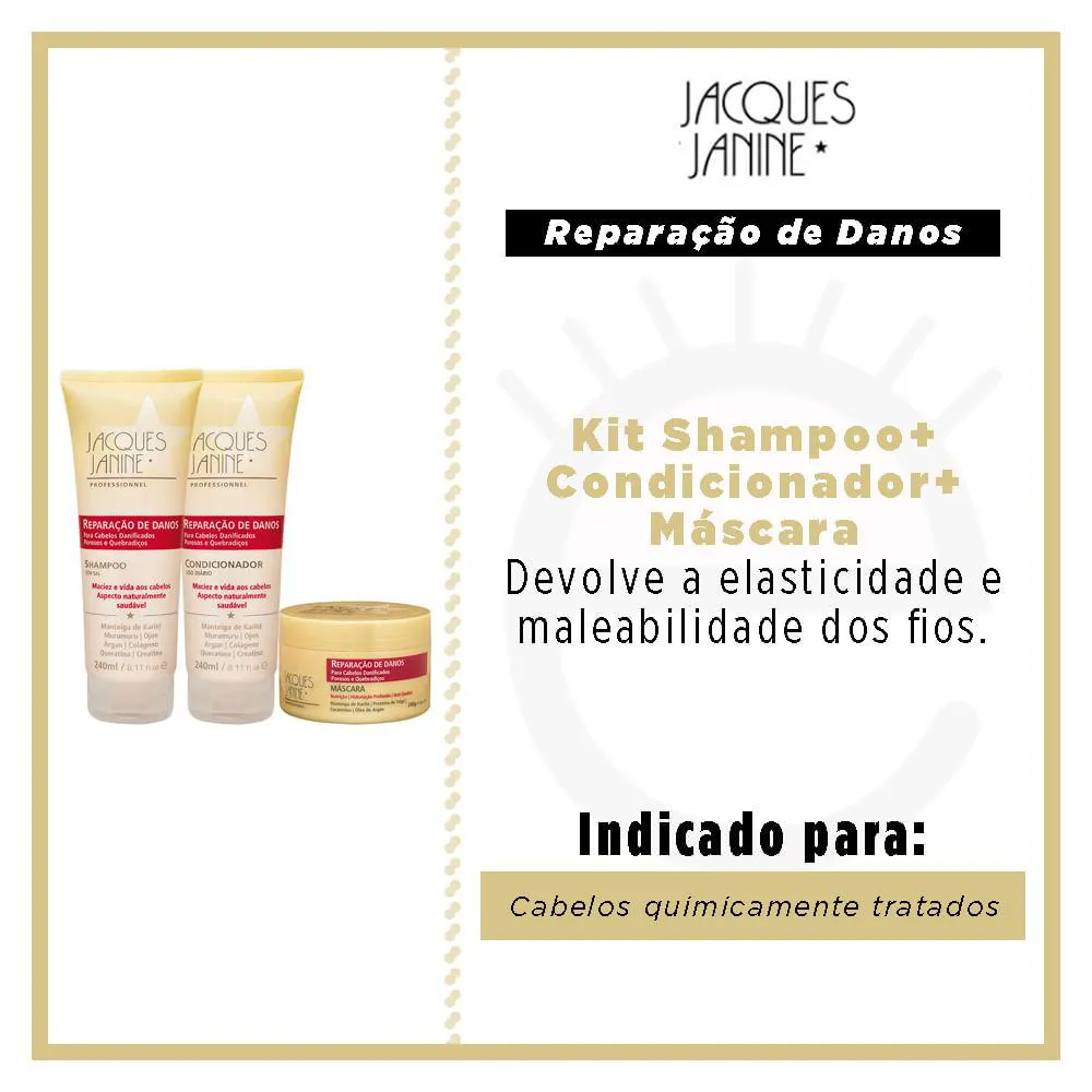 Jacques Janine Reparação de Danos Kit - Shampoo + Condicionador + Máscara