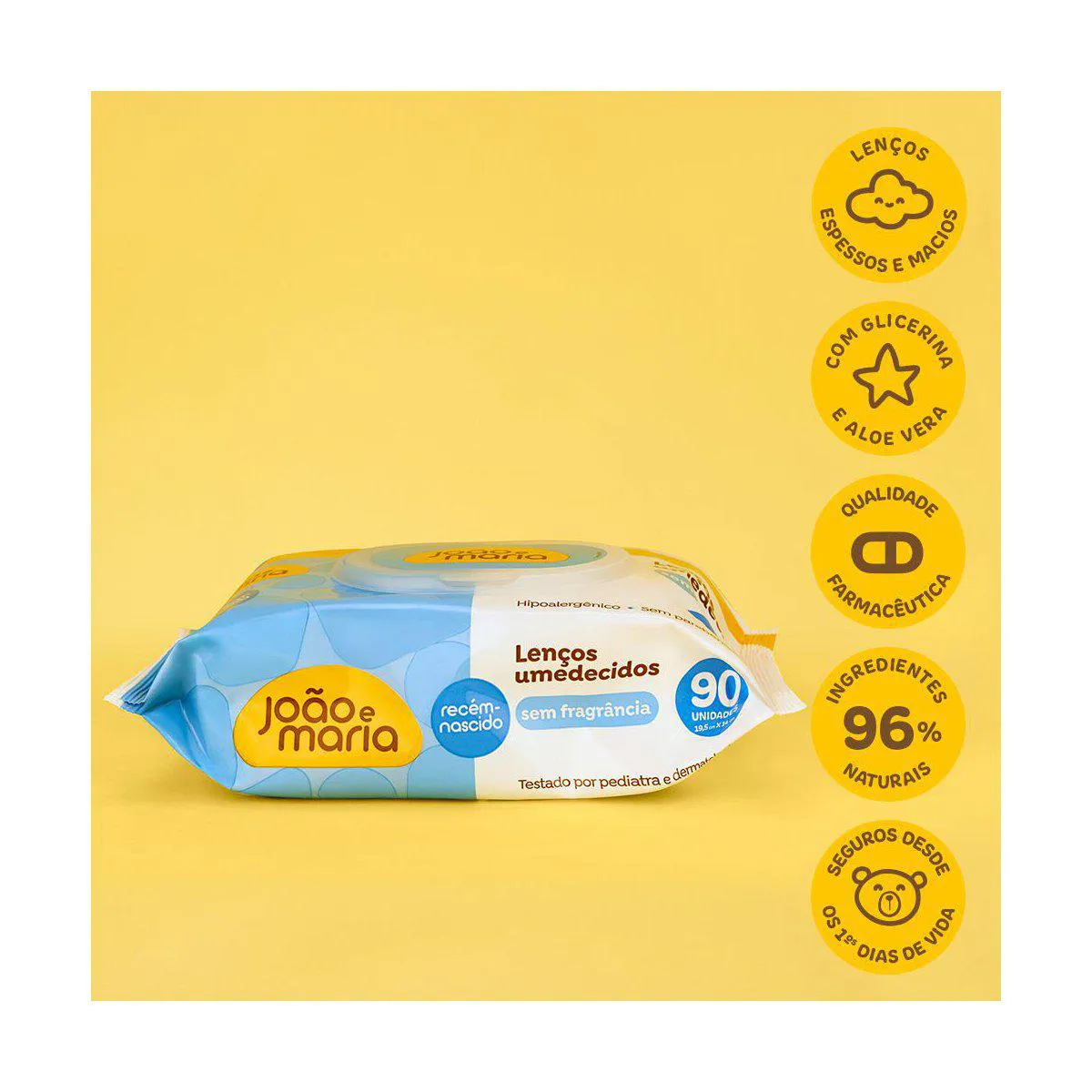 Lenço Umedecido João e Maria Recém-Nascido Sem Fragrância 90 Unidades