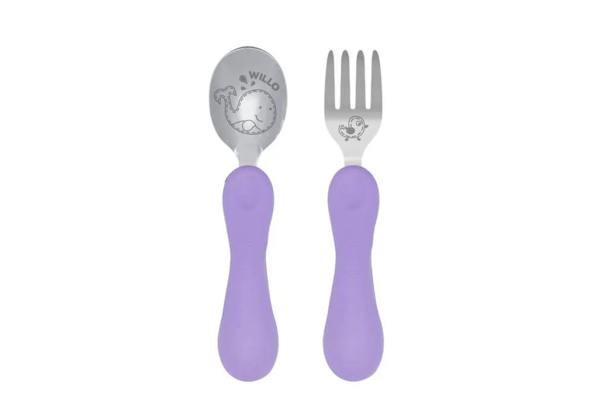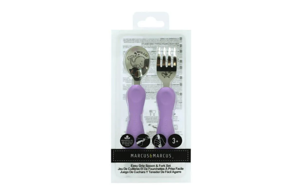 Jogo Anatômico Colher e Garfo com Inox Baleia Willo 2pcs (em Silicone e Inox) - Marcus & Marcus