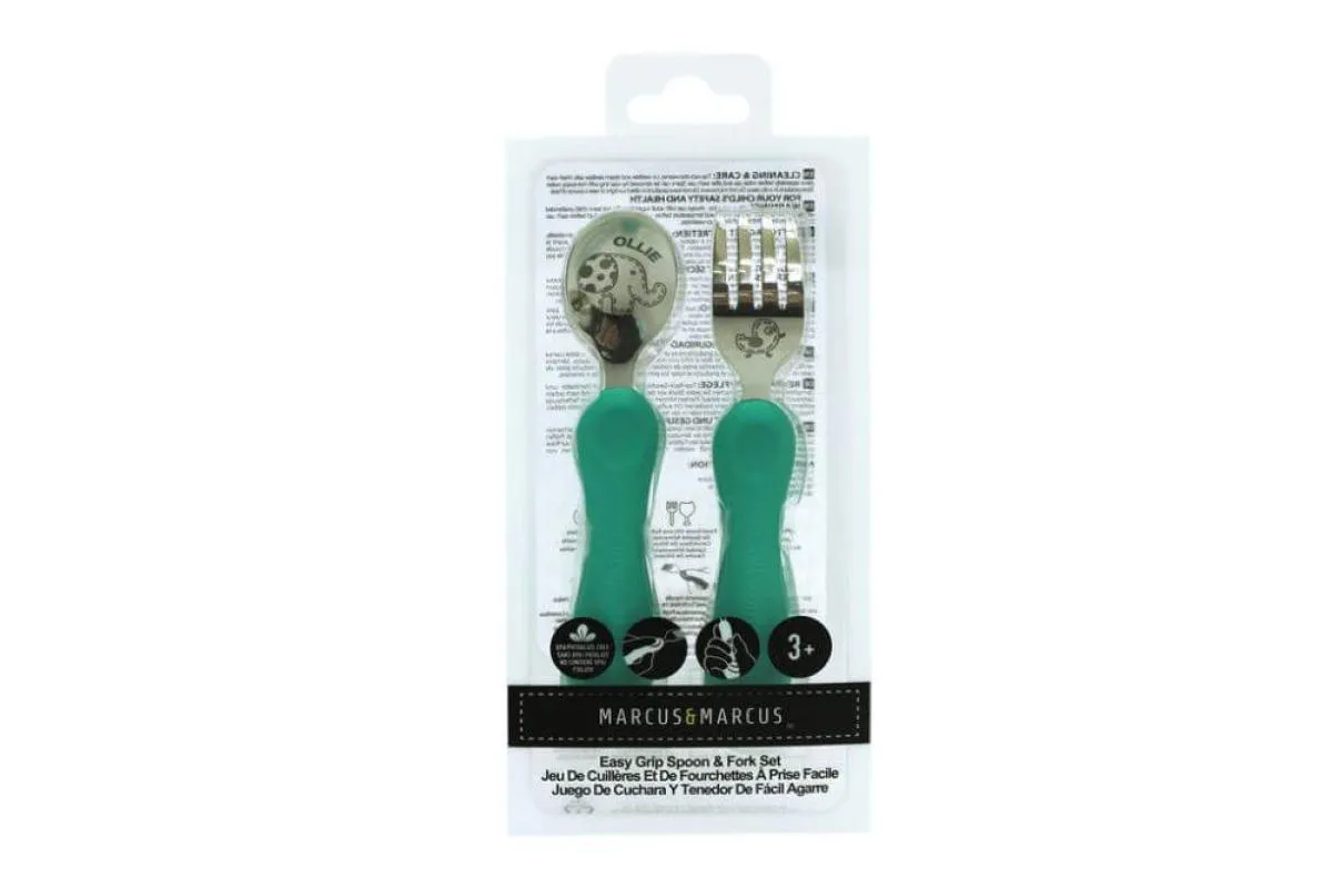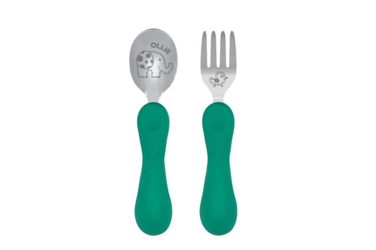 Jogo Anatômico Colher e Garfo com Inox Elefante Ollie 2pcs (em Silicone e Inox) - Marcus Marcus