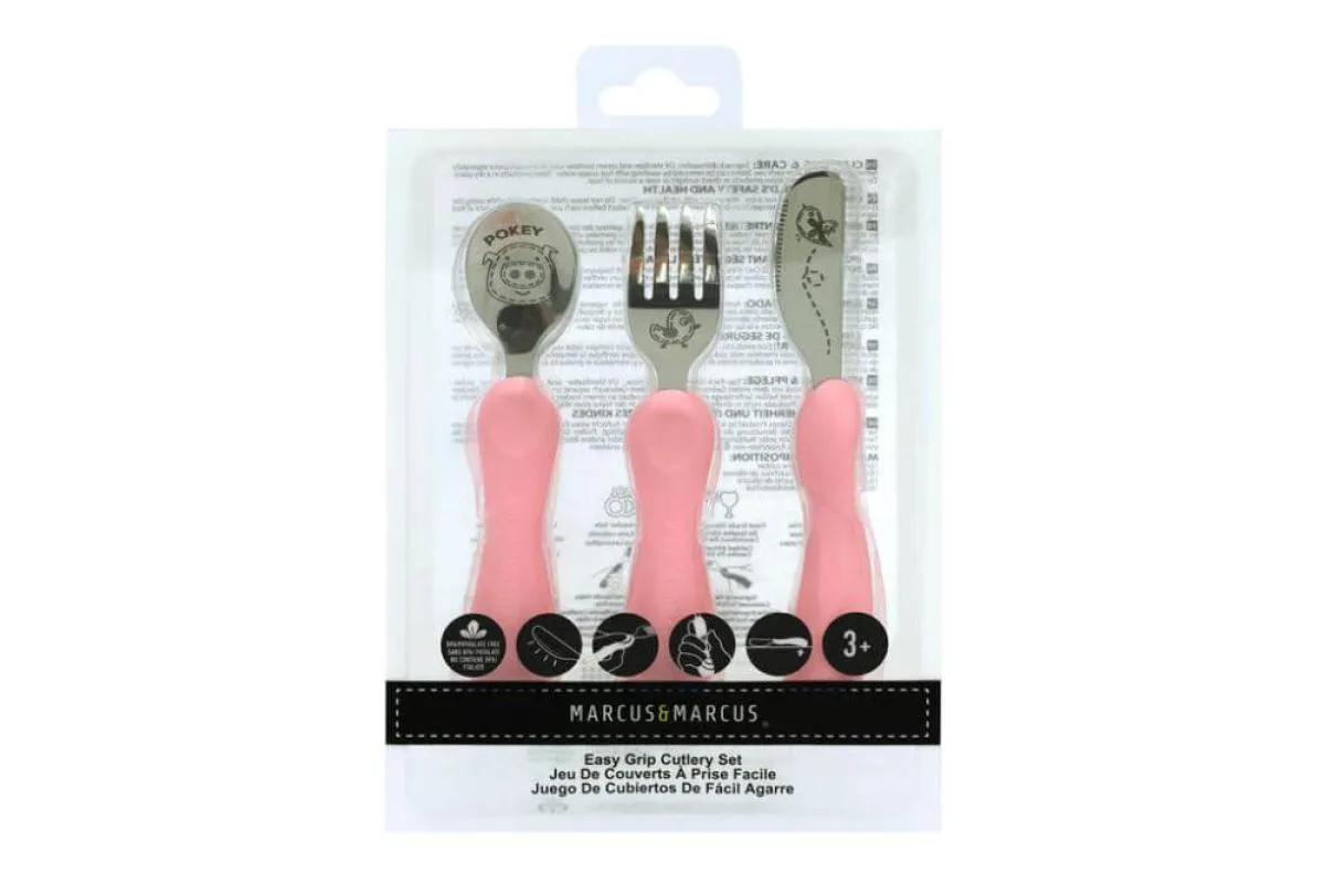 O Jogo Anatômico Colher, Garfo e Faca 3Pcs da Marcus Marcus é uma excelente escolha para pais que procuram utensílios seguros e de qualidade para os seus filhos. Este conjunto é feito de aço inoxidável com cabos em silicone, proporcionando uma aderência firme e confortável para as mãos pequenas. O formato anatômico facilita a pegada, tornando as refeições mais agradáveis e seguras.