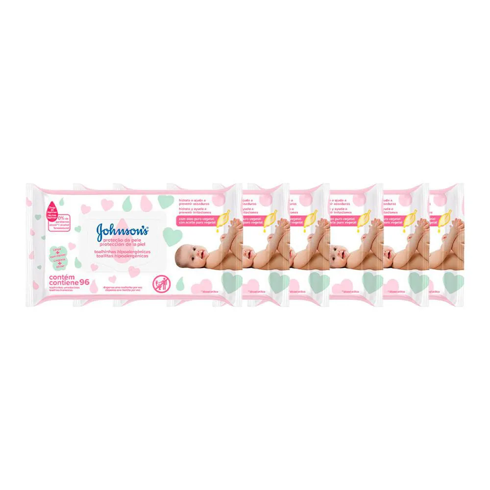 As Toalhas Umedecidas Johnson’s Baby Extra Cuidado, são dermatologicamente testadas, hipoalergênicas e sem álcool.