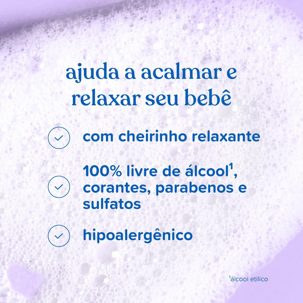Aplique na pele molhada do bebê e massageie suavemente até formar espuma. Para banho na banheira infantil, despeje uma tampinha em água morna e agite para formar espuma. Em banheiras normais, utilize 3 tampinhas.