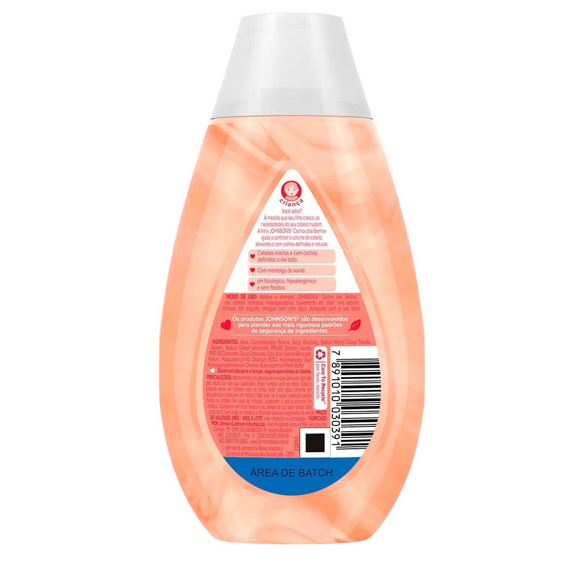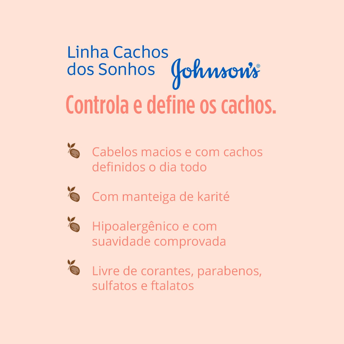 Para que serve: O Shampoo Johnson's Cachos dos Sonhos Definidos ajuda a controlar o volume do cabelo, deixando os cachos mais definidos e naturais. Desenvolvido por especialistas em cabelos infantis, é suave e conta com a exclusiva fórmula chega de lágrimas, que evita também irritação nos olhos.