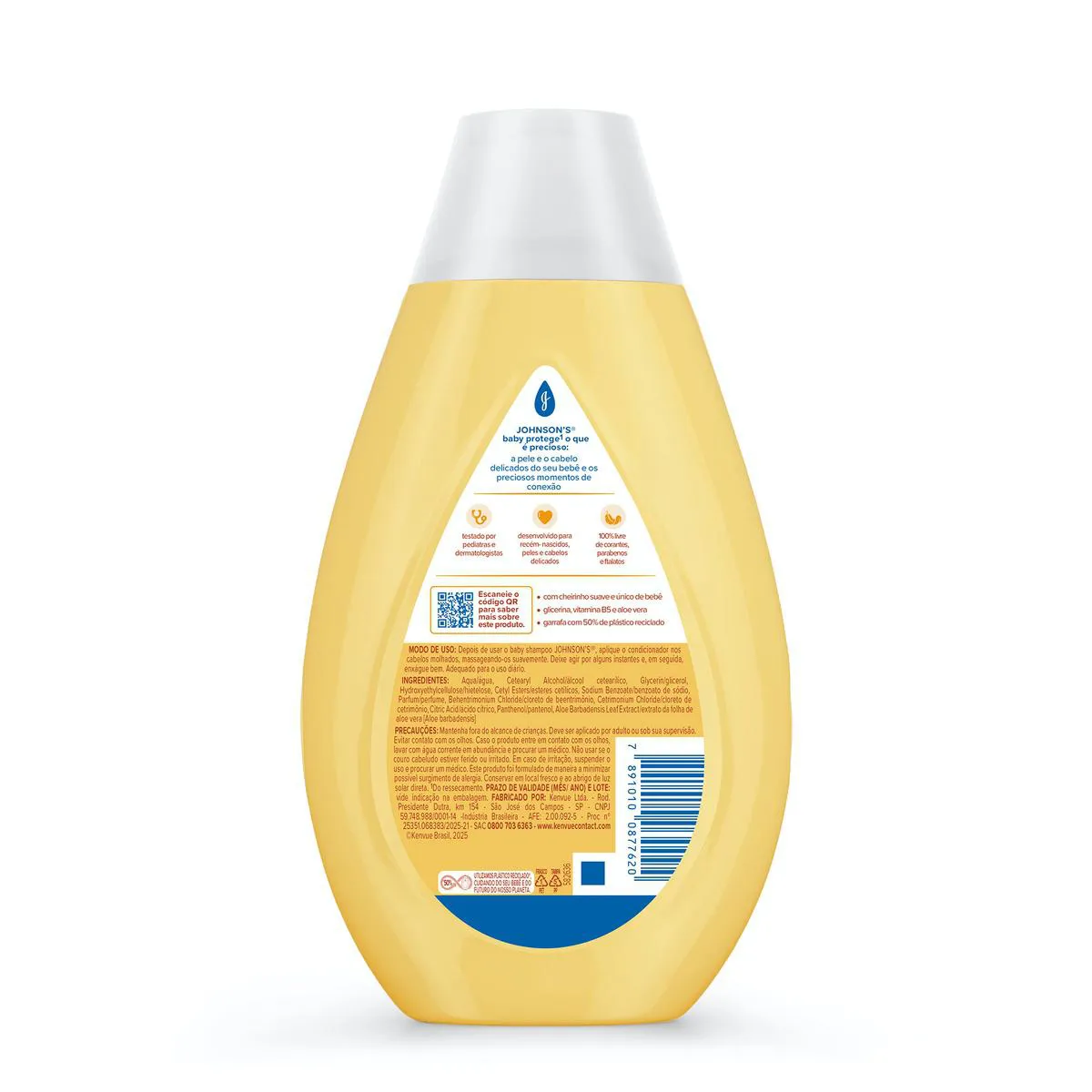 Sua fórmula exclusiva Chega de Lágrimas é tão suave para os olhos quanto água pura, além disso contém Glicerina de origem natural, que ajuda a hidratar o cabelo delicado do bebê, é hipoalergênica, livre de corantes, parabenos e sulfatos, e tem pH balanceado.