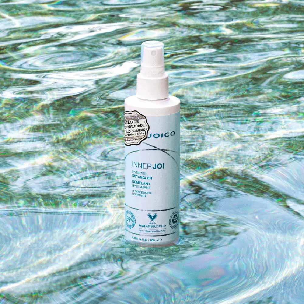 1. Após lavar os cabelos, aplique o Innerjoi Hydrate Detangler nos fios ainda úmidos.