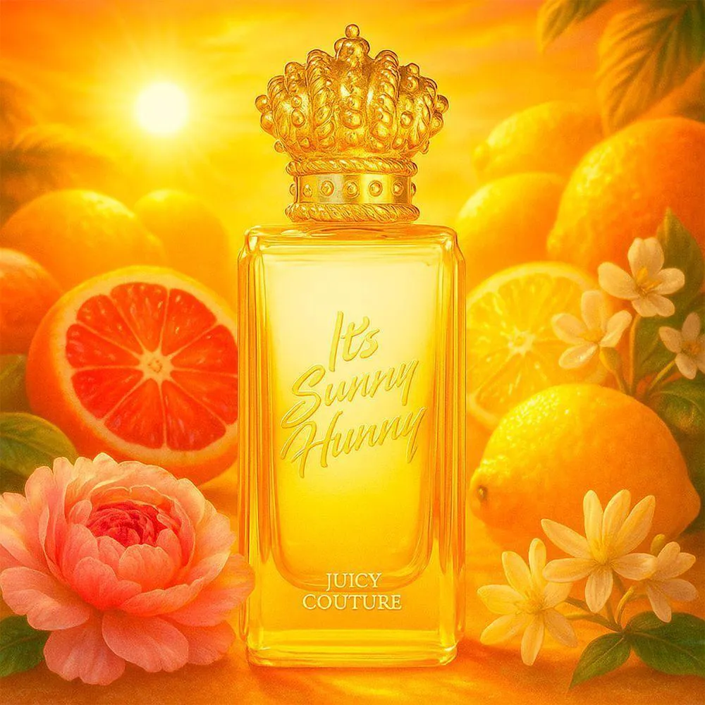 O Juicy Couture Rock The Rainbow It's Sunny Hunny Eau de Toilette 75ml é uma fragrância oriental floral, lançada em 2021, que captura a essência de um dia ensolarado com uma vibe otimista e alegre. Desenvolvida para mulheres que vivem com energia e confiança, combina a abertura cítrica e vibrante de limão italiano, laranja sanguínea e bergamota com um coração floral de pétalos de peônia, néctar de madressilva e jasmim, finalizando com uma base quente de âmbar dourado, sândalo e almíscar aéreo. Ideal para uso diário ou ocasiões casuais, especialmente na primavera e no verão, reflete o espírito colorido e rebelde da marca. O frasco, com design amarelo ensolarado e tampa em forma de coroa, é um símbolo de alegria e glamour.