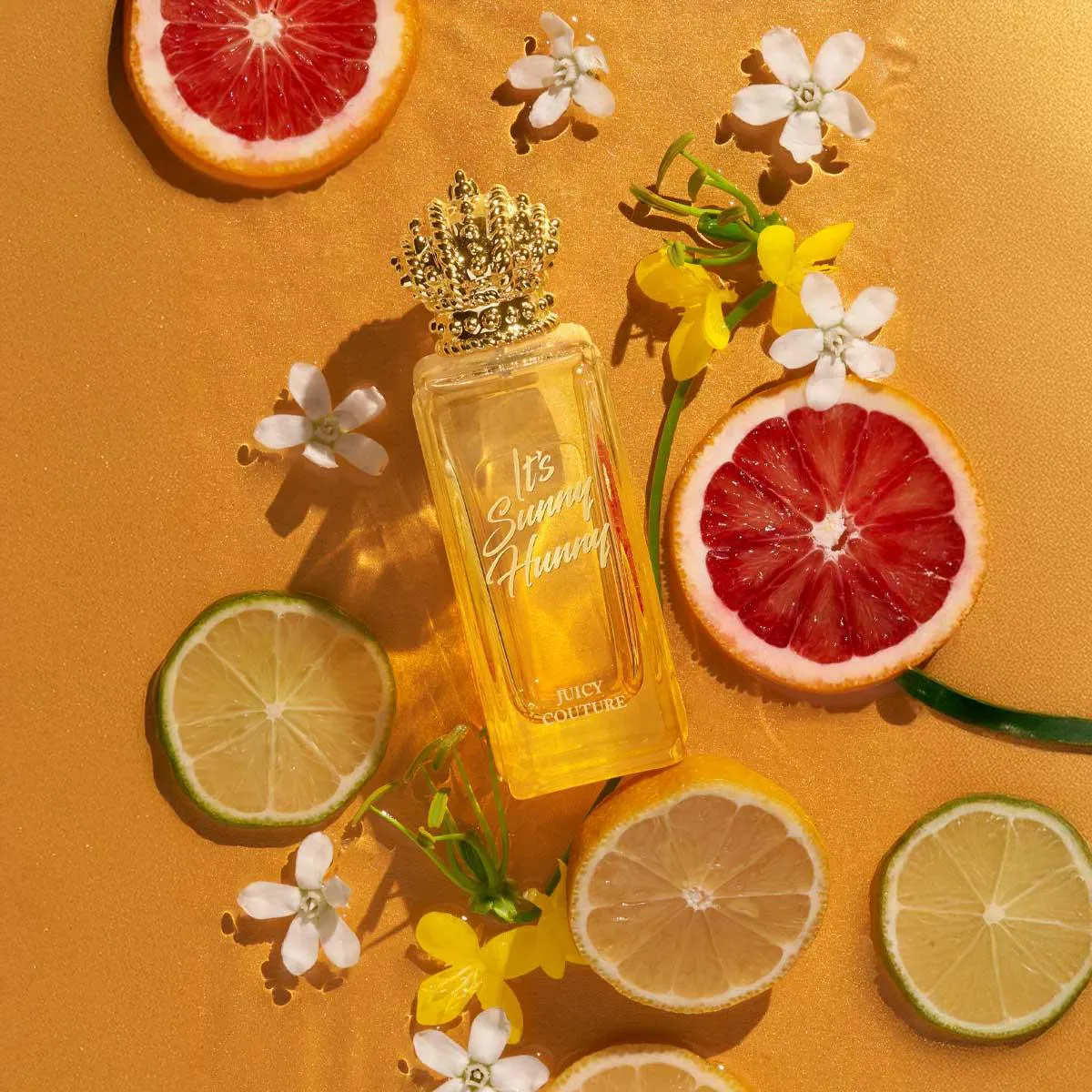Juicy Couture Rock the Rainbow It’s Sunny Hunny - Radiante, Alegre e Irresistível Juicy Couture Rock the Rainbow It’s Sunny Hunny é pura vibração em forma de perfume. Com notas de limão italiano, peônia e âmbar dourado, traduz a alegria dos dias ensolarados em uma fragrância radiante e irresistível. Um floral oriental cheio de energia, leveza e doçura, perfeito para quem exala confiança e brilho próprio.