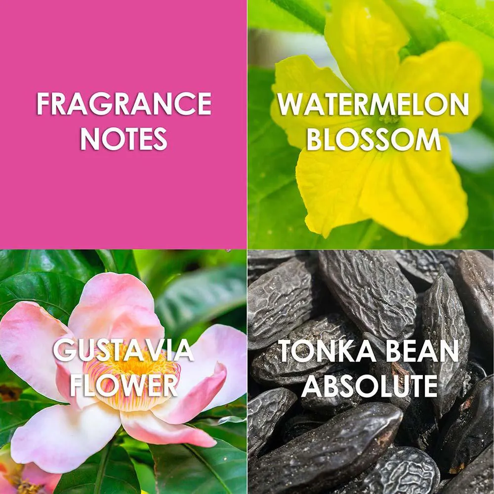 A fragrância é um floral verde gourmand. A mistura revigorante de flor de melancia, folha de violeta e yuzu cria uma primeira impressão espirituosa, enquanto Vitória-Régia, gardênia e janiperana infundem o coração floral com um encanto exótico. Por fim, acordes de cupcake e fava tonka proporcionam uma doçura divertida, mas viciante, que permanece na pele.