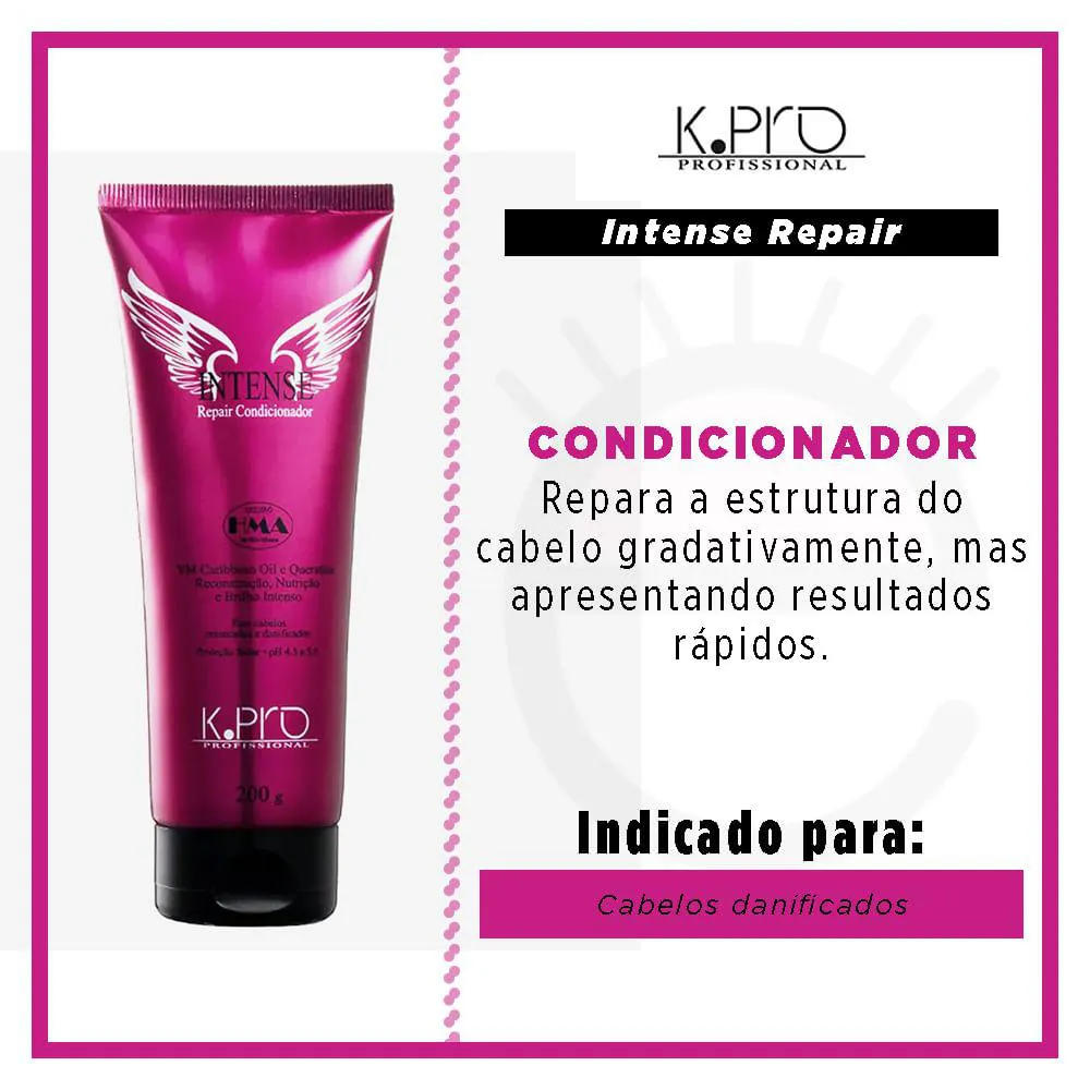 O Intense Repair Condicionador é um produto capilar desenvolvido para reconstruir e hidratar os cabelos, atuando na reparação da estrutura capilar através de uma fórmula com ativos nano encapsulados e tecnologia HMA. Sua composição permite tratar especialmente cabelos danificados e ressecados.