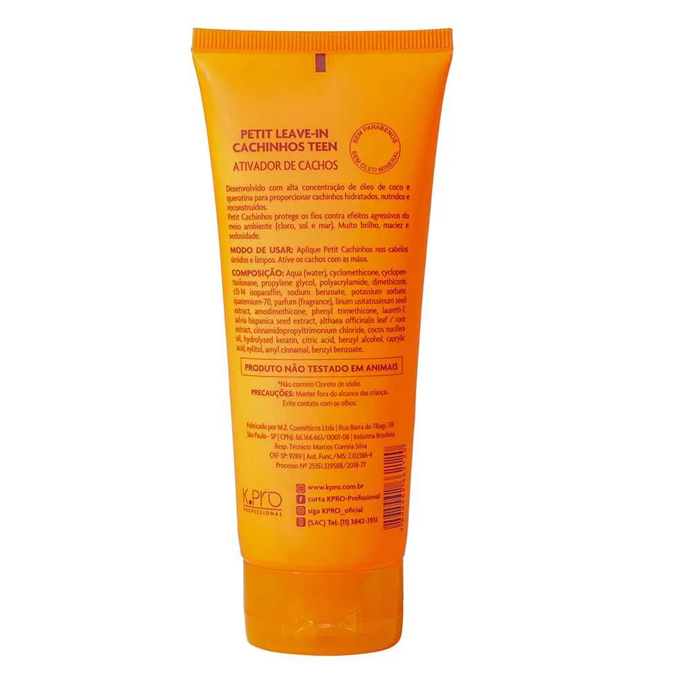 O K-Pro Leave-In Cachinhos Teen Petit é um produto capilar desenvolvido especificamente para cabelos cacheados infantis, formulado com alta concentração de óleo de coco e queratina. Trata-se de um leave-in específico para cachos que oferece cuidados capilares desde a infância.