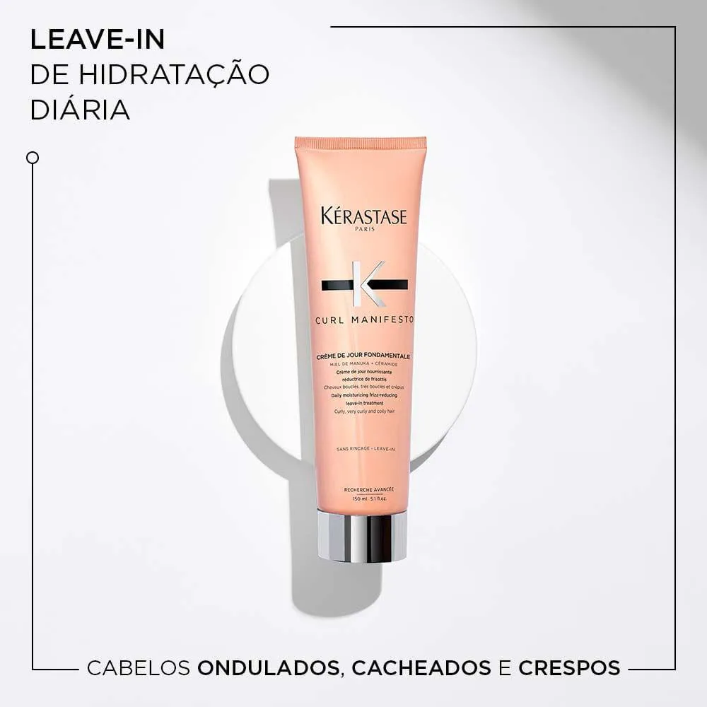 Leave-in hidratante diário e e protetor térmico, enriquecido com Mel de Manuka e Ceramida para cabelos ondulados, cacheados e crespos.
