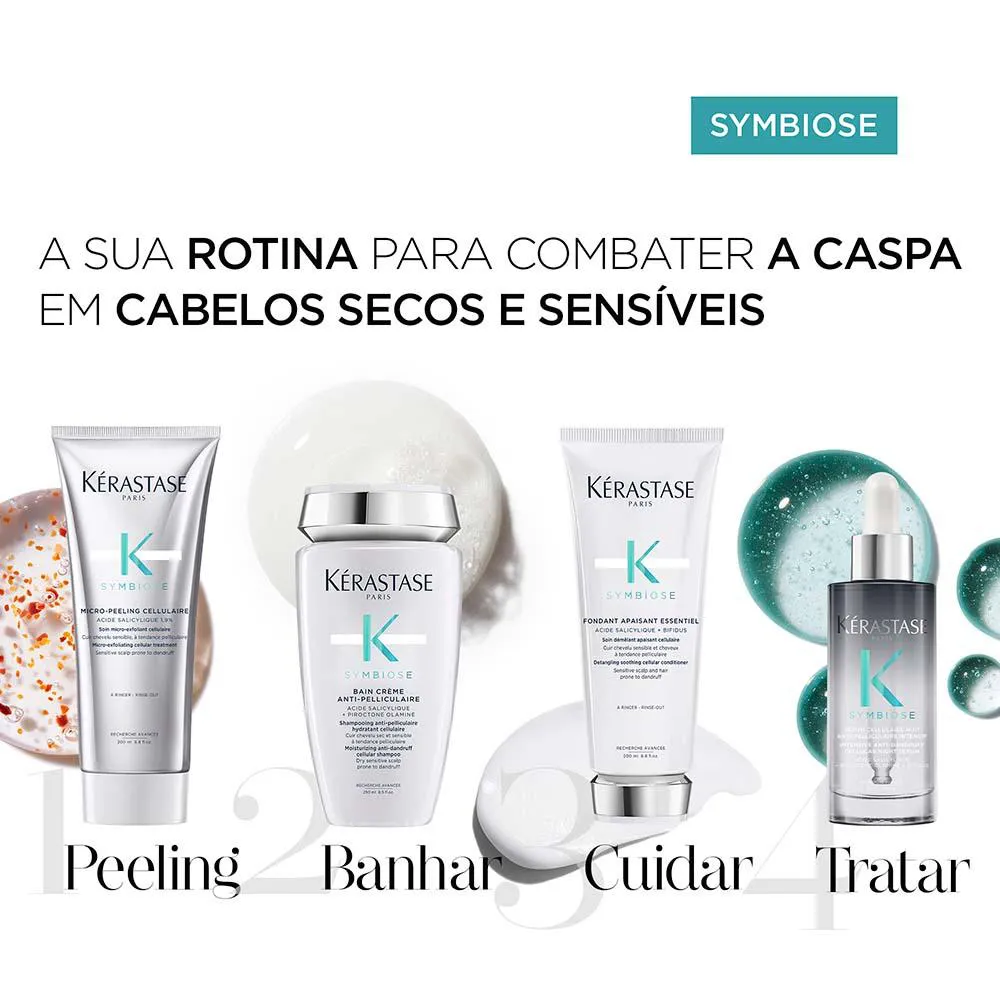 O Soro Symbiose ajuda a eliminar a caspa na fonte com sua ação contínua de 8H à noite, que é o momento mais regenerador do couro cabeludo.