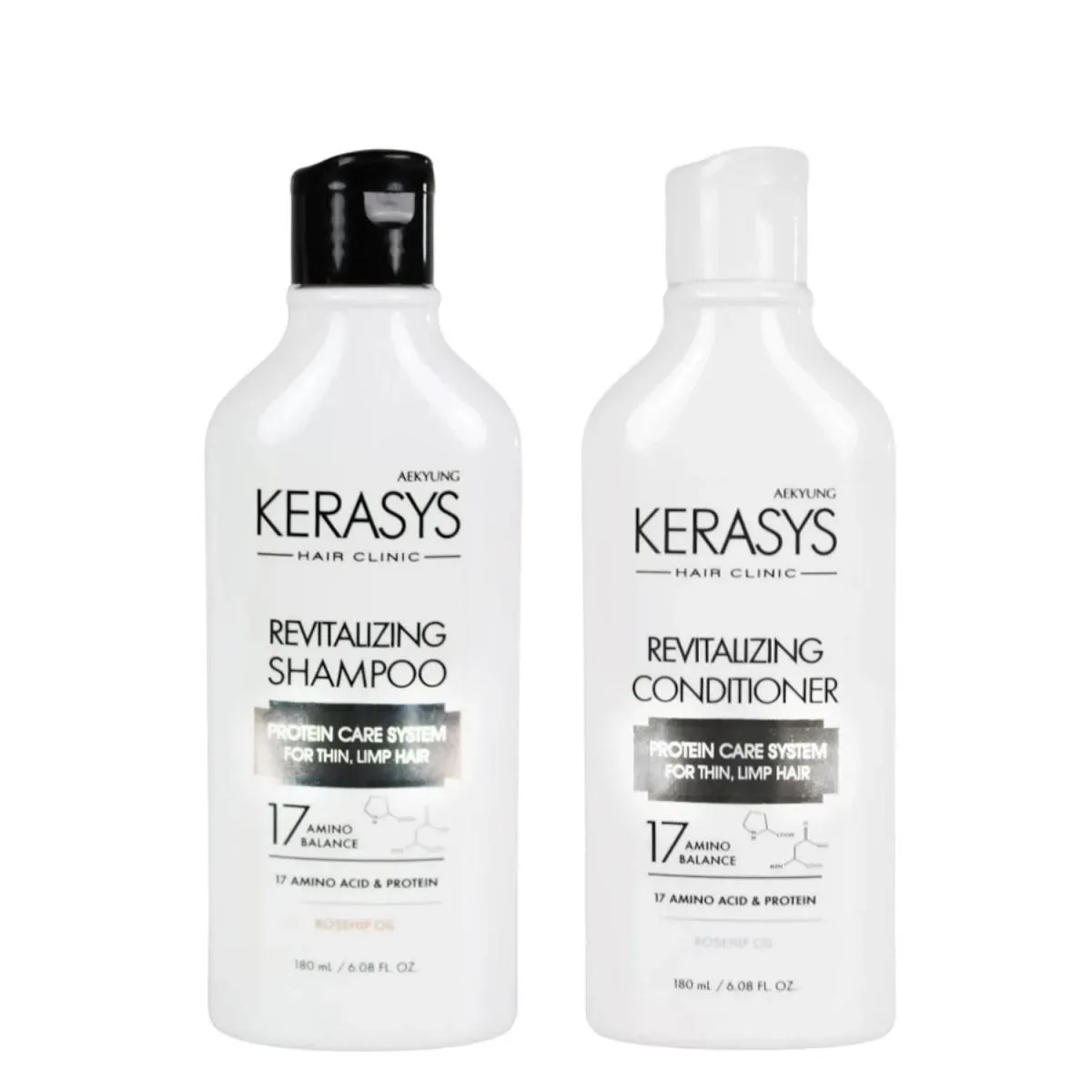Descrição Kerasys Kit (Duo Revitalizing 180ml + Leave In Heat Active Damage Repair 50ml) O Kerasys Revitalizing Rosehip Oil Duo (shampoo + condicionador) foi desenvolvido para cabelos ressecados e sem brilho. Sua fórmula é enriquecida com óleo de rosa mosqueta, rico em ácidos graxos e vitaminas que nutrem profundamente, devolvem vitalidade e promovem um brilho radiante. O duo limpa e condiciona os fios sem pesar, proporcionando maciez, leveza e toque sedoso. Para potencializar o tratamento, o kit acompanha o Mini Leave-In Heat Active Damage Repair (50ml), um finalizador com proteção térmica que repara danos, fortalece a fibra capilar e protege os fios contra o calor de secadores e pranchas. A combinação dos três produtos garante cabelos revitalizados, hidratados, protegidos e saudáveis da raiz às pontas.