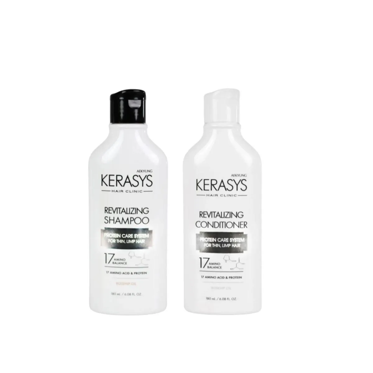 Descrição Kerasys Kit (Duo Revitalizing + Tratamento Própolis Shine) 180ml Kit para cabelos ressecados, porosos, desistrados e sem vida. Contém: 1 Kit Duo Revitalizing 180ml: O Kerasys Revitalizing Rosehip Oil Duo (shampoo + condicionador) foi desenvolvido para cabelos ressecados e sem brilho. Sua fórmula é enriquecida com óleo de rosa mosqueta, rico em ácidos graxos e vitaminas que nutrem profundamente, devolvem vitalidade e promovem um brilho radiante. O duo limpa e condiciona os fios sem pesar, proporcionando maciez, leveza e toque sedoso. Para potencializar o tratamento, o kit acompanha o Mini Leave-In Heat Active Damage Repair (50ml), um finalizador com proteção térmica que repara danos, fortalece a fibra capilar e protege os fios contra o calor de secadores e pranchas. A combinação dos três produtos garante cabelos revitalizados, hidratados, protegidos e saudáveis da raiz às pontas.
