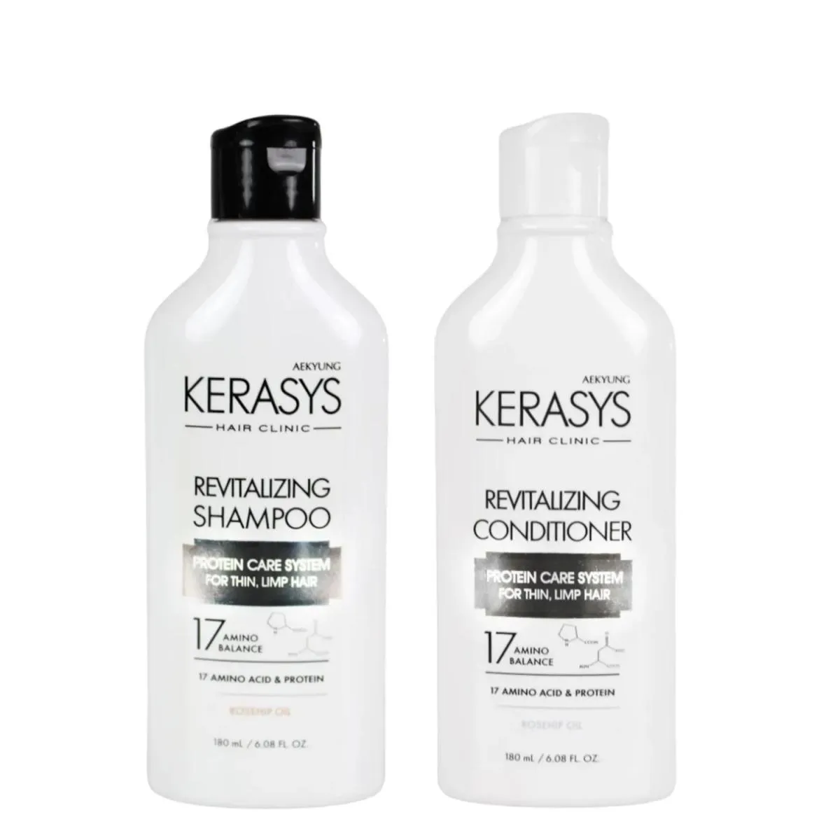 Descrição Kerasys Kit Duo (Sh e Cd 180ml + Leave In Heat Active 50ml) O Kerasys Revitalizing Rosehip Oil Duo (shampoo + condicionador) foi desenvolvido para cabelos ressecados e sem brilho. Sua fórmula é enriquecida com óleo de rosa mosqueta, rico em ácidos graxos e vitaminas que nutrem profundamente, devolvem vitalidade e promovem um brilho radiante. O duo limpa e condiciona os fios sem pesar, proporcionando maciez, leveza e toque sedoso. Para potencializar o tratamento, o kit acompanha o Mini Leave-In Heat Active Damage Repair (50ml), um finalizador com proteção térmica que repara danos, fortalece a fibra capilar e protege os fios contra o calor de secadores e pranchas. A combinação dos três produtos garante cabelos revitalizados, hidratados, protegidos e saudáveis da raiz às pontas.